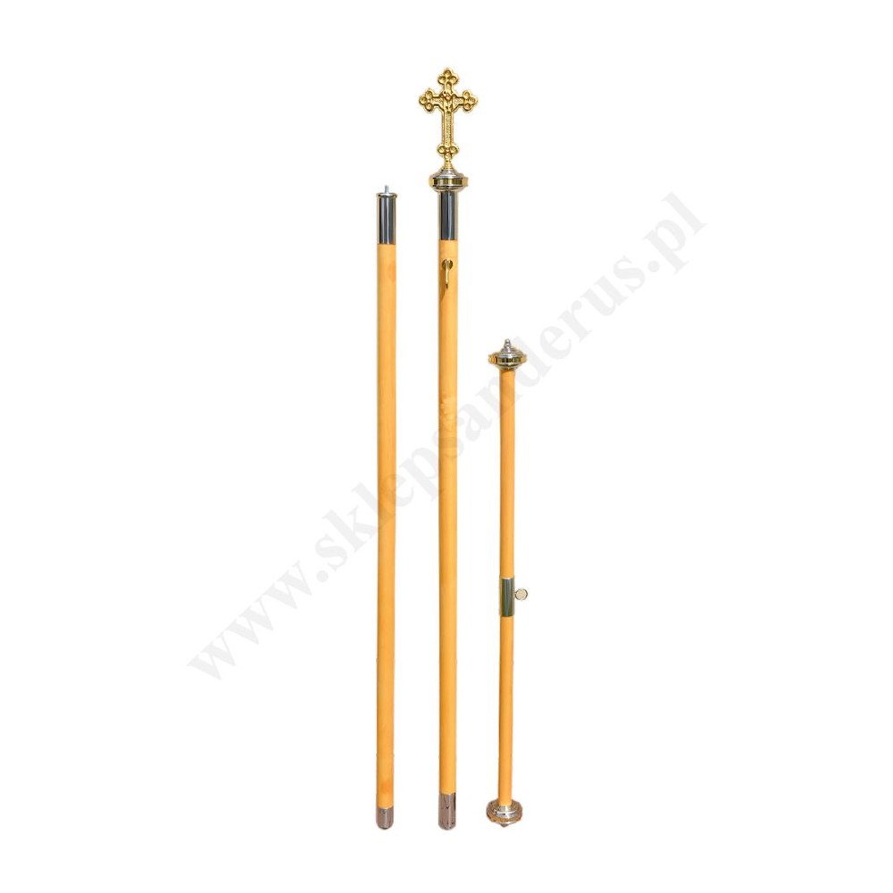 Drzewiec skręcany do chorągwi wraz z okuciami mosiężnymi, niklowanymi, drzewce lakierowane. Wysokość drzewca wraz ze zwieńczeniem po skręceniu 299 cm (152 cm + 147 cm). Długość belki poprzecznej 100 cm (pod chorągiew o szerokości 88.5 m).