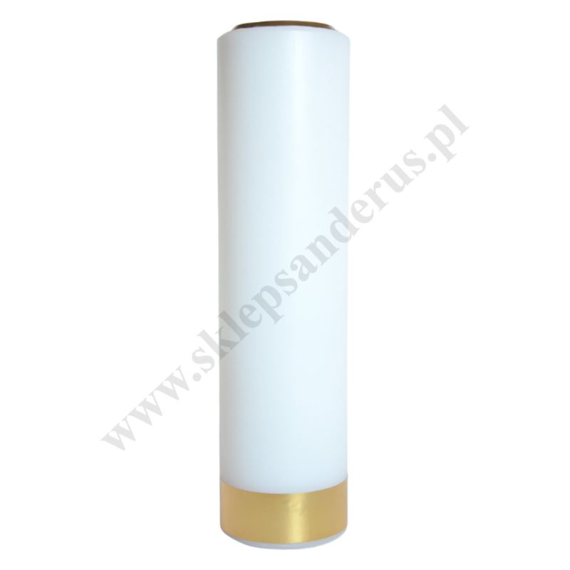 Świeca ołtarzowa olejowa bez wkładu, oblewana parafiną o wysokości 30 cm i średnicy 8 cm, czysta, gładka, bez zdobienia.