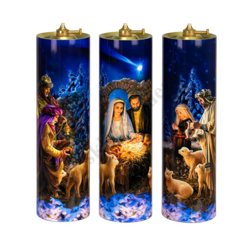 ŚWIECE OLEJOWE BOŻE NARODZENIE - komplet z wkładem regulowanym - wys. 22 cm - 78887