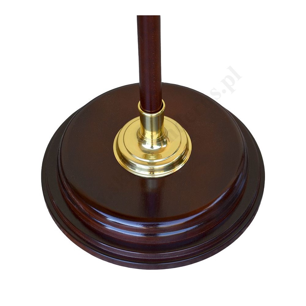 Krzyż procesyjny na drzewcu z drewna bukowego bejcowanego z podstawą o średnicy 40 cm. Wysokość krzyża 220 cm, szerokość ramion krzyża 27.5 cm