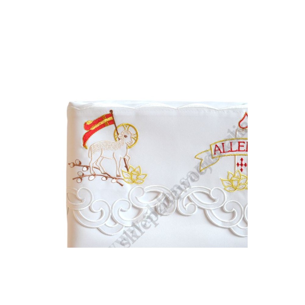 Obrus ołtarzowy z motywem wielkanocnym o wymiarach 3.00 x 1.30 m.