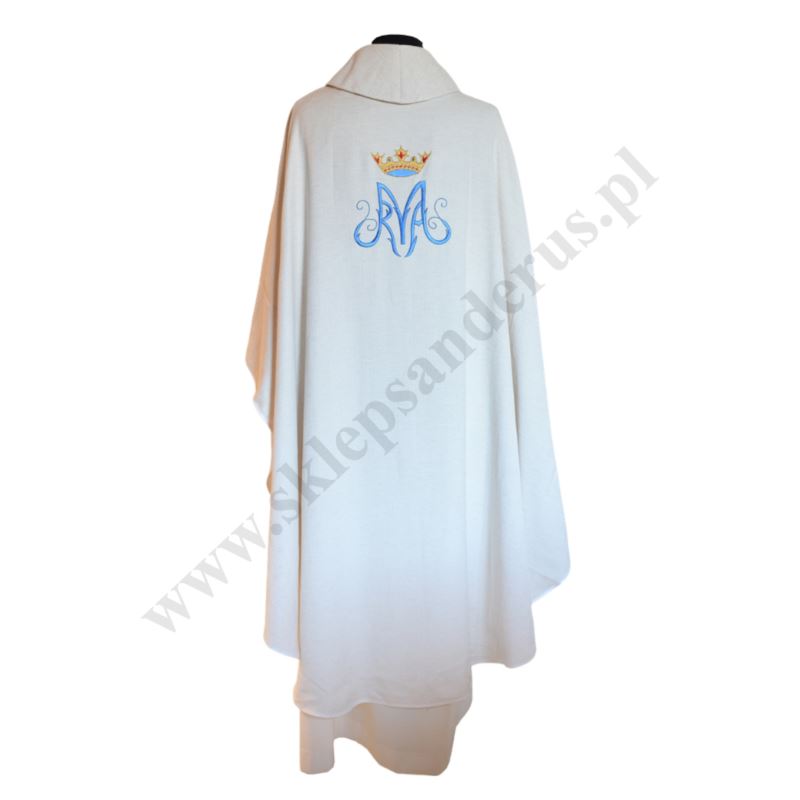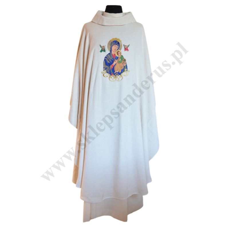 Ornat przedstawiający na klatce piersiowej wizerunek Matki Bożej Nieustającej Pomocy, na plecach symbol maryjny.