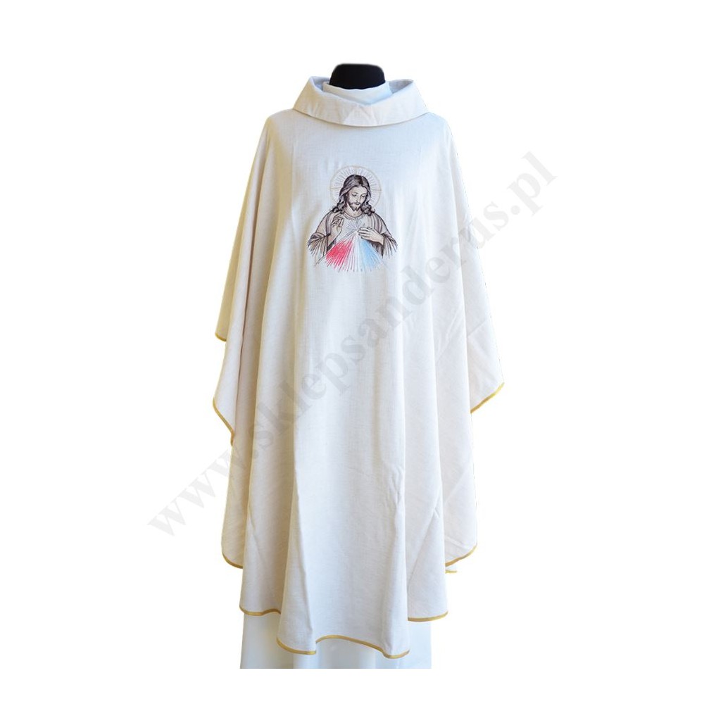 Ornat z wyhaftowanym wizerunkiem Jezu Ufam Tobie wykonany materiału typu len.