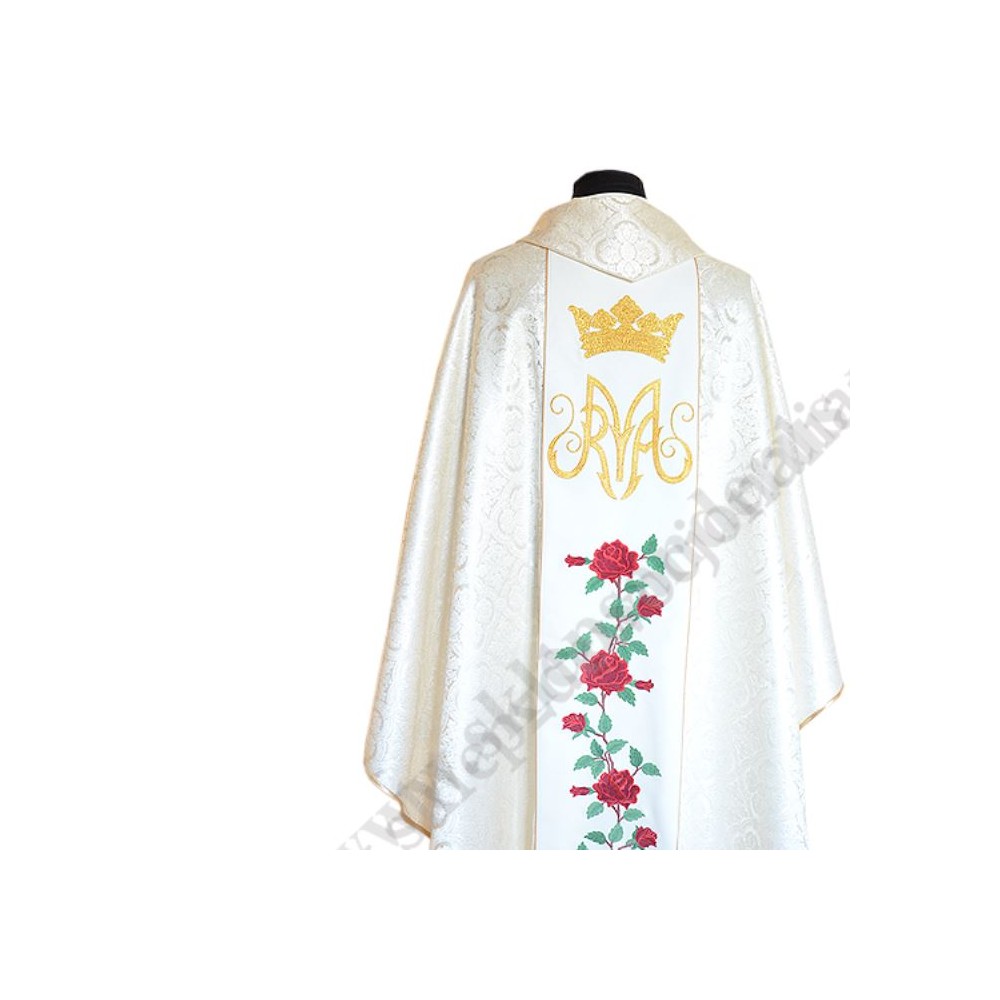 Ornat z pasami haftowanymi komputerowo. Wykonany z lekkiego i przyjemnego w dotyku materiału. W komplecie stuła wewnętrzna.