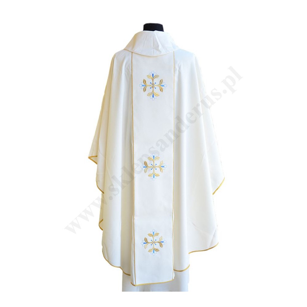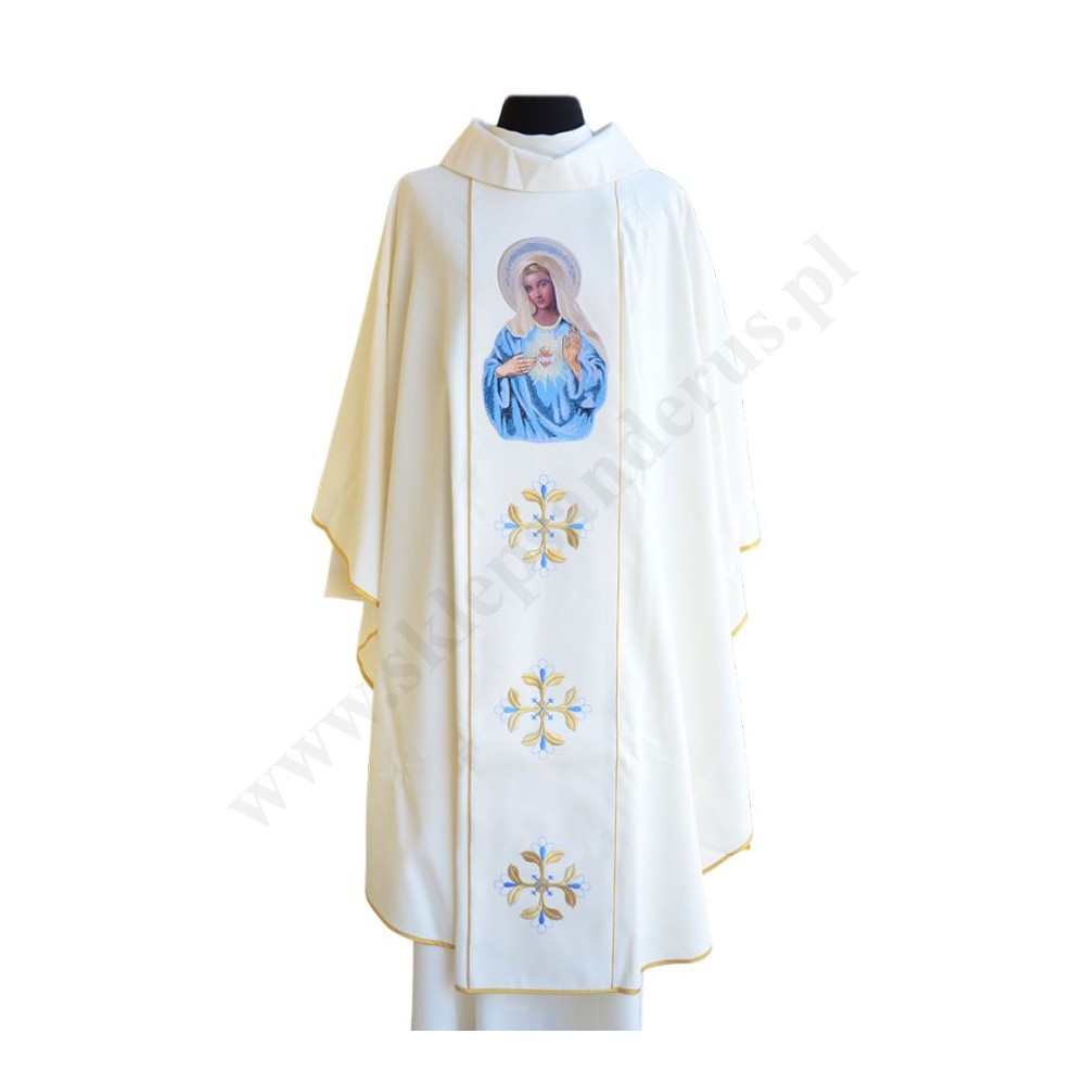 Ornat z wyhaftowanym wizerunkiem Serca Matki Bożej oraz motywami florystycznymi.