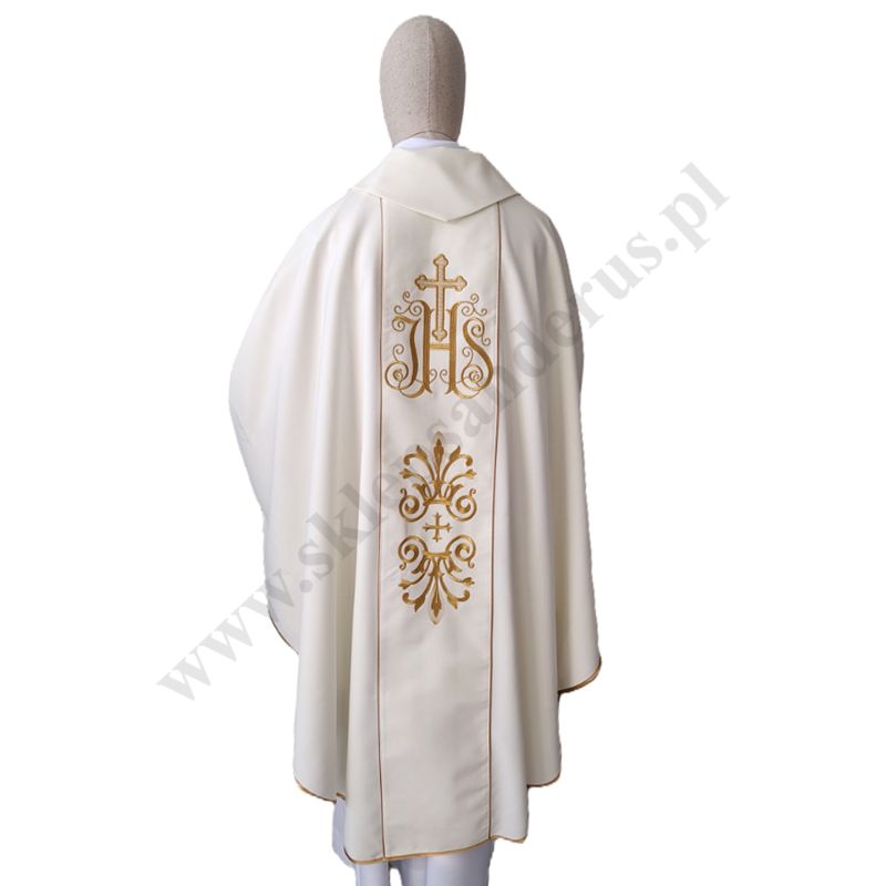 Ornat z pasami haftowanymi komputerowo. Wykonany z lekkiego i przyjemnego w dotyku materiału.