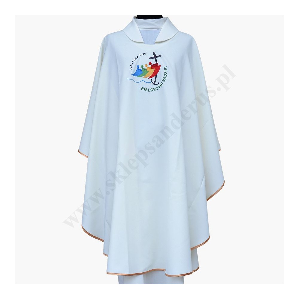 Ornat wykonany ze streczu z wyhaftowanym logo Roku Jubileuszowego 2025.