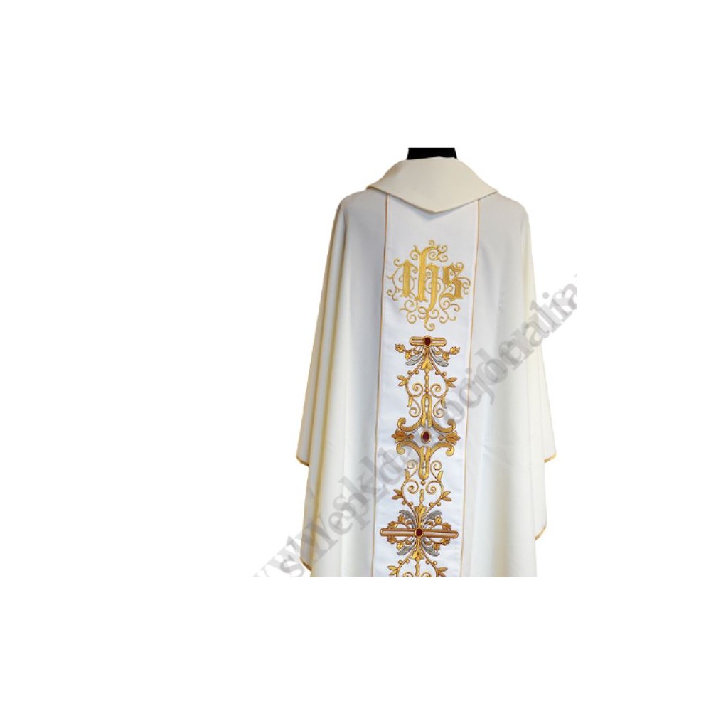 Ornat w wizerunkiem Kardynała Stefana Wyszyńskiego z pasami haftowanymi komputerowo. Wykonany z lekkiego i przyjemnego w dotyku materiału. W komplecie stuła wewnętrzna.