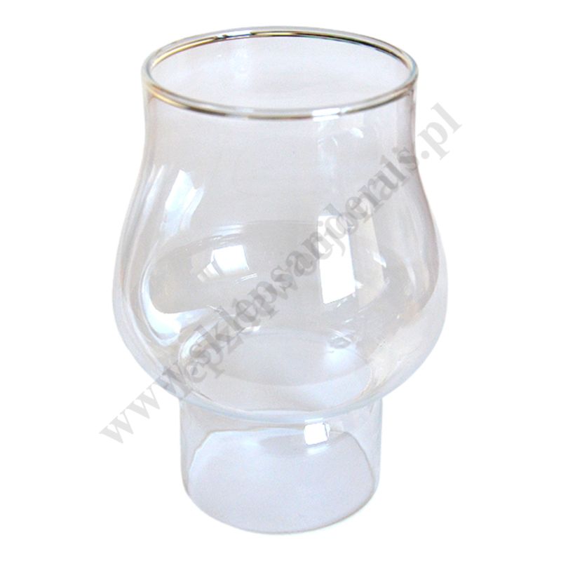 Szklany klosz nakładany na świece, wewnętrzna średnica otworu 7.2 cm,wysokość klosza 16 cm, średnica w najszerszym miejscu 10 cm.