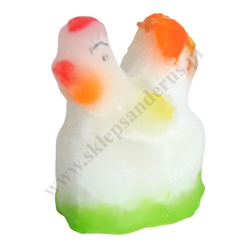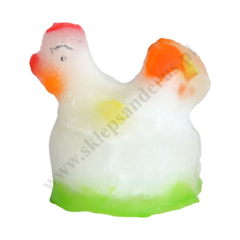 Kurczątko wykonane z cukru o wysokości 5.5 cm, szerokości 5.5 cm i głębokości 3.4 cm.