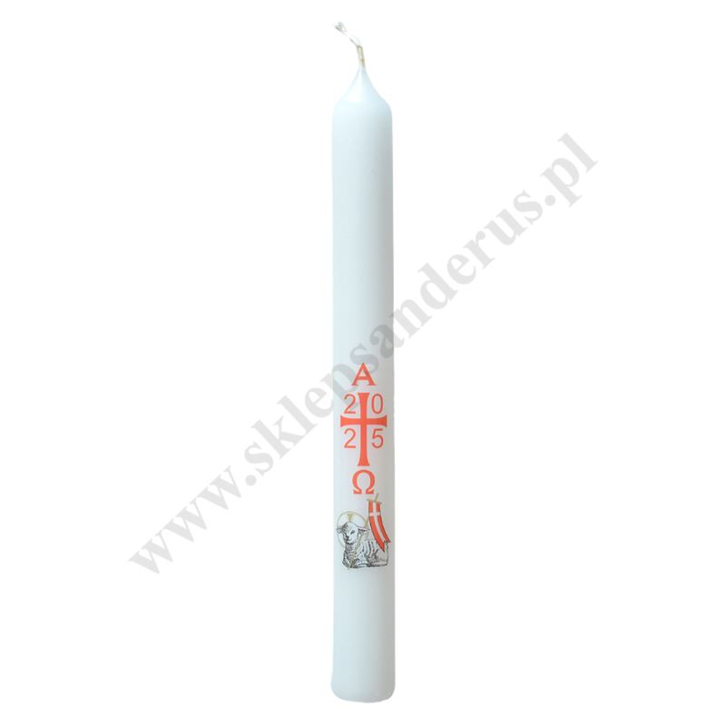 Paschalik wielkanocny parafinowy o wysokości 22 cm i średnicy 2.2 cm.