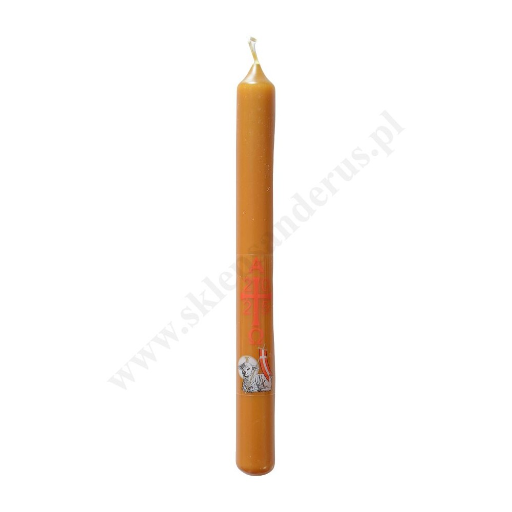 Paschalik wielkanocny parafinowo-woskowy o wysokości 22 cm i średnicy 2.2 cm.
