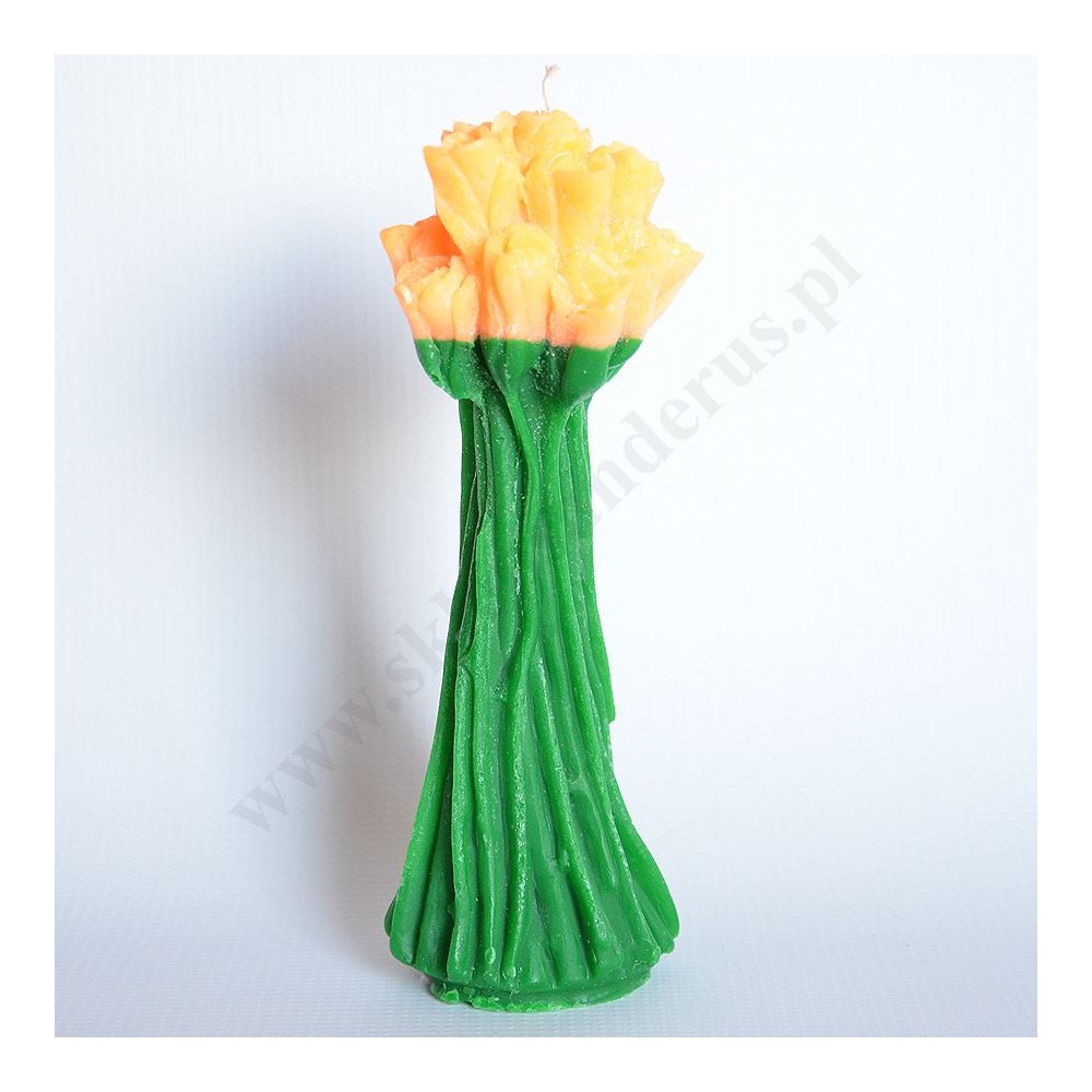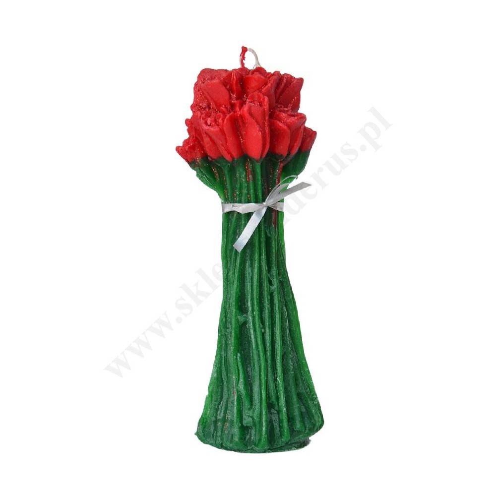 Świeca w postaci bukietu róż o wysokości ok. 21.5 cm i szerokości ok. 7.5 cm. Sprzedaż w miksie kolorów.