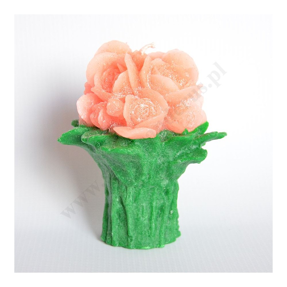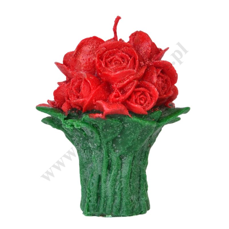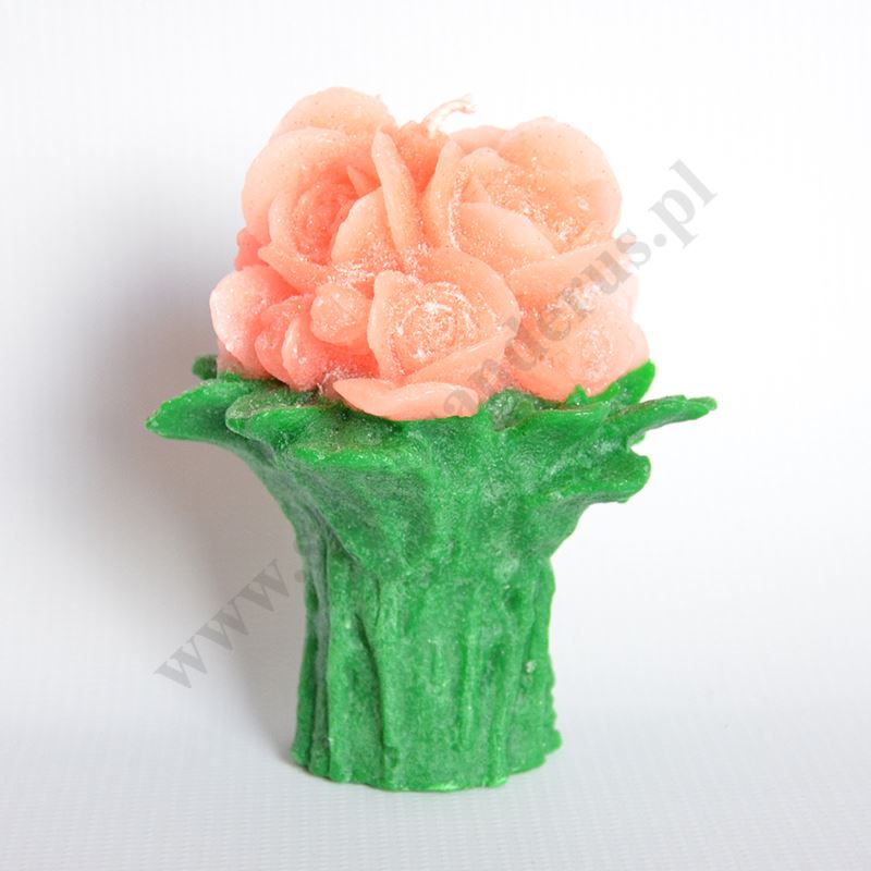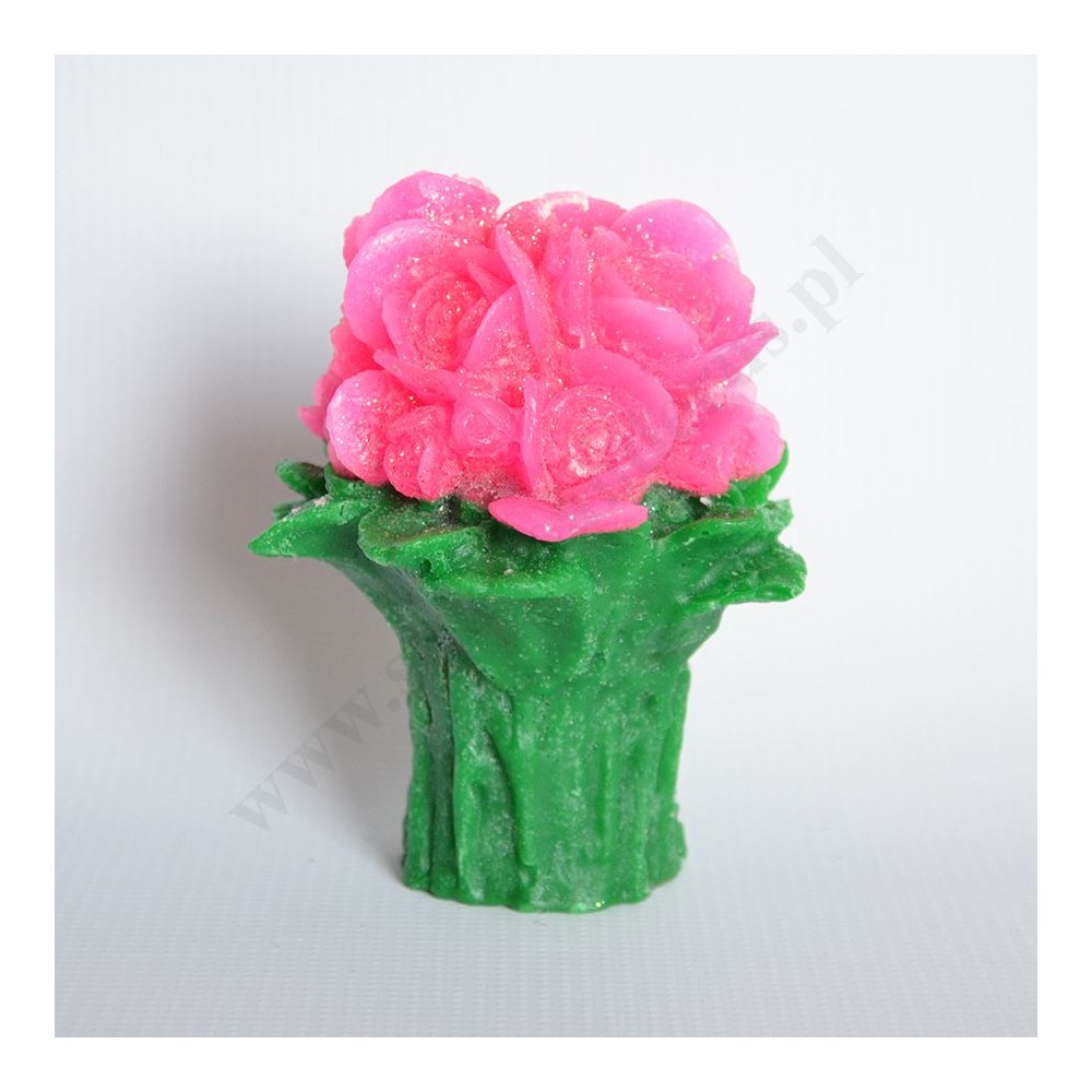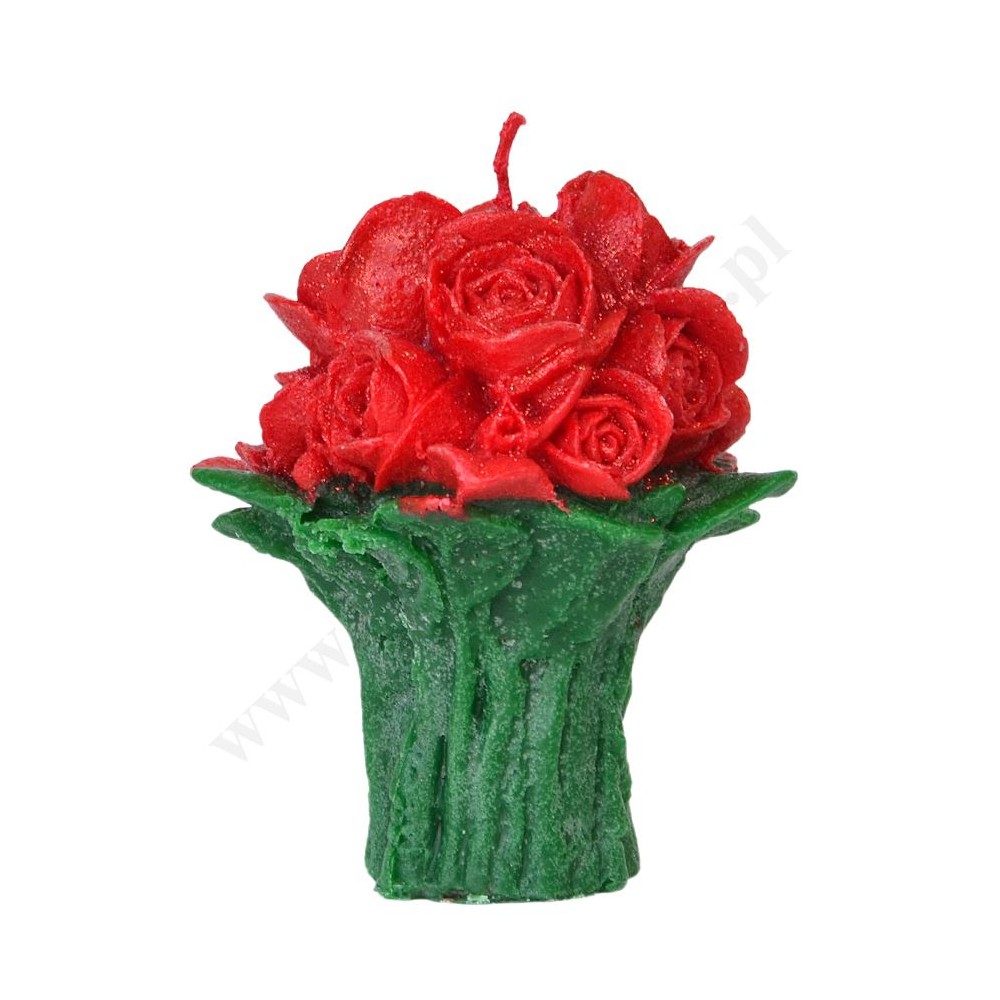 Świeca w postaci bukietu róż o wysokości ok.13 cm i szerokości ok.12 cm. Sprzedaż w miksie kolorów.