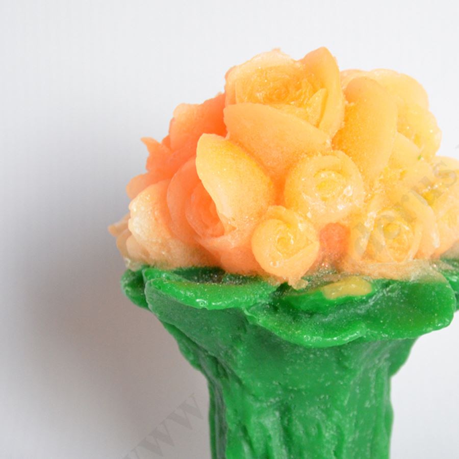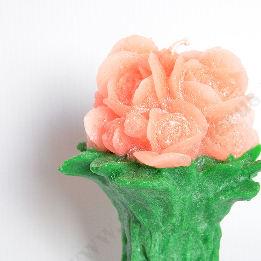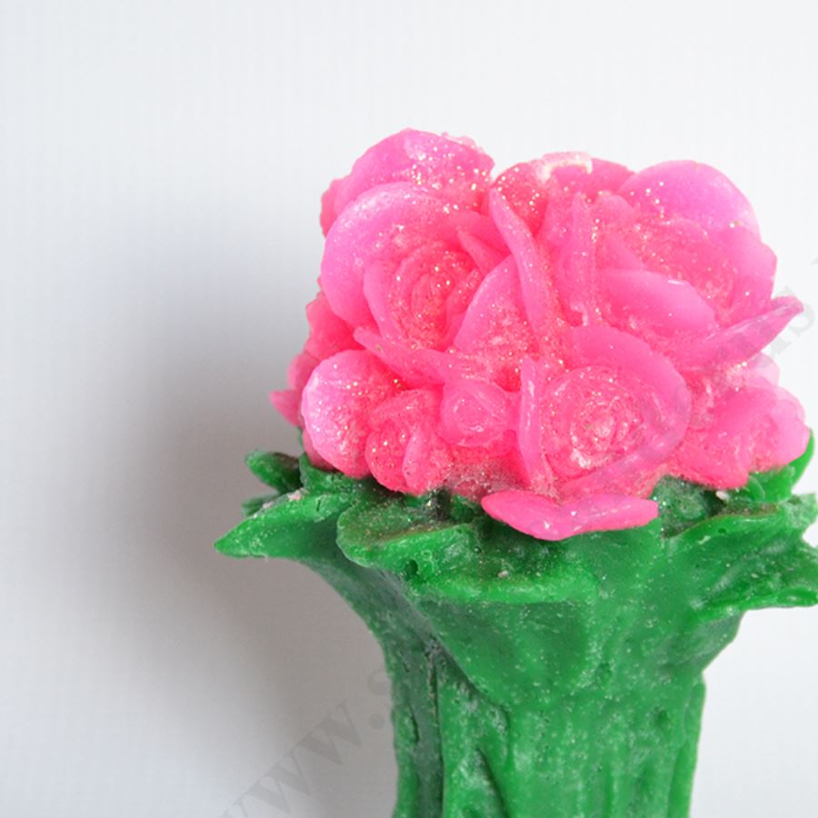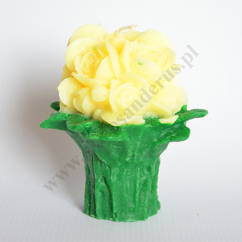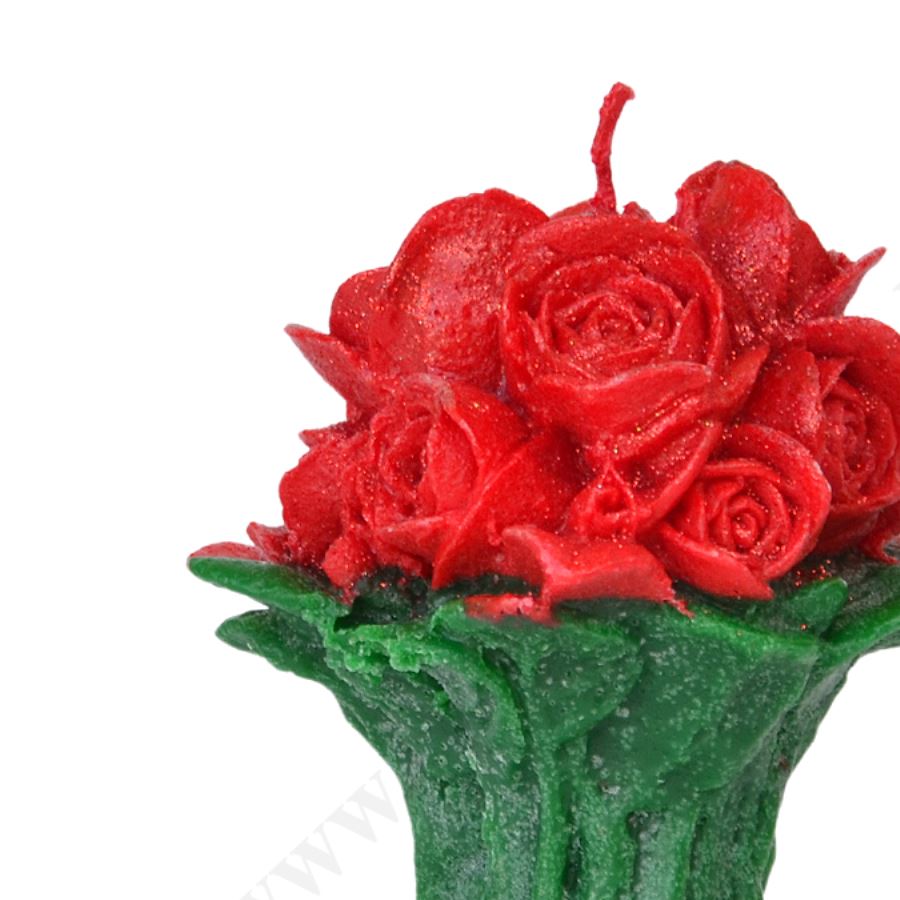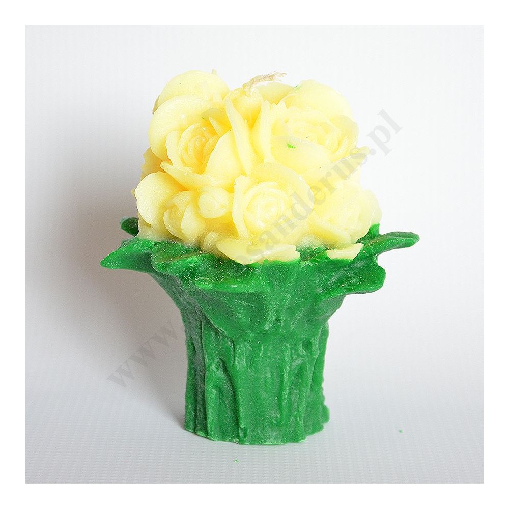 Świeca w postaci bukietu róż o wysokości ok.13 cm i szerokości ok.12 cm. Sprzedaż w miksie kolorów.