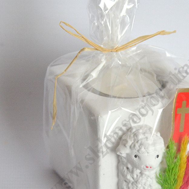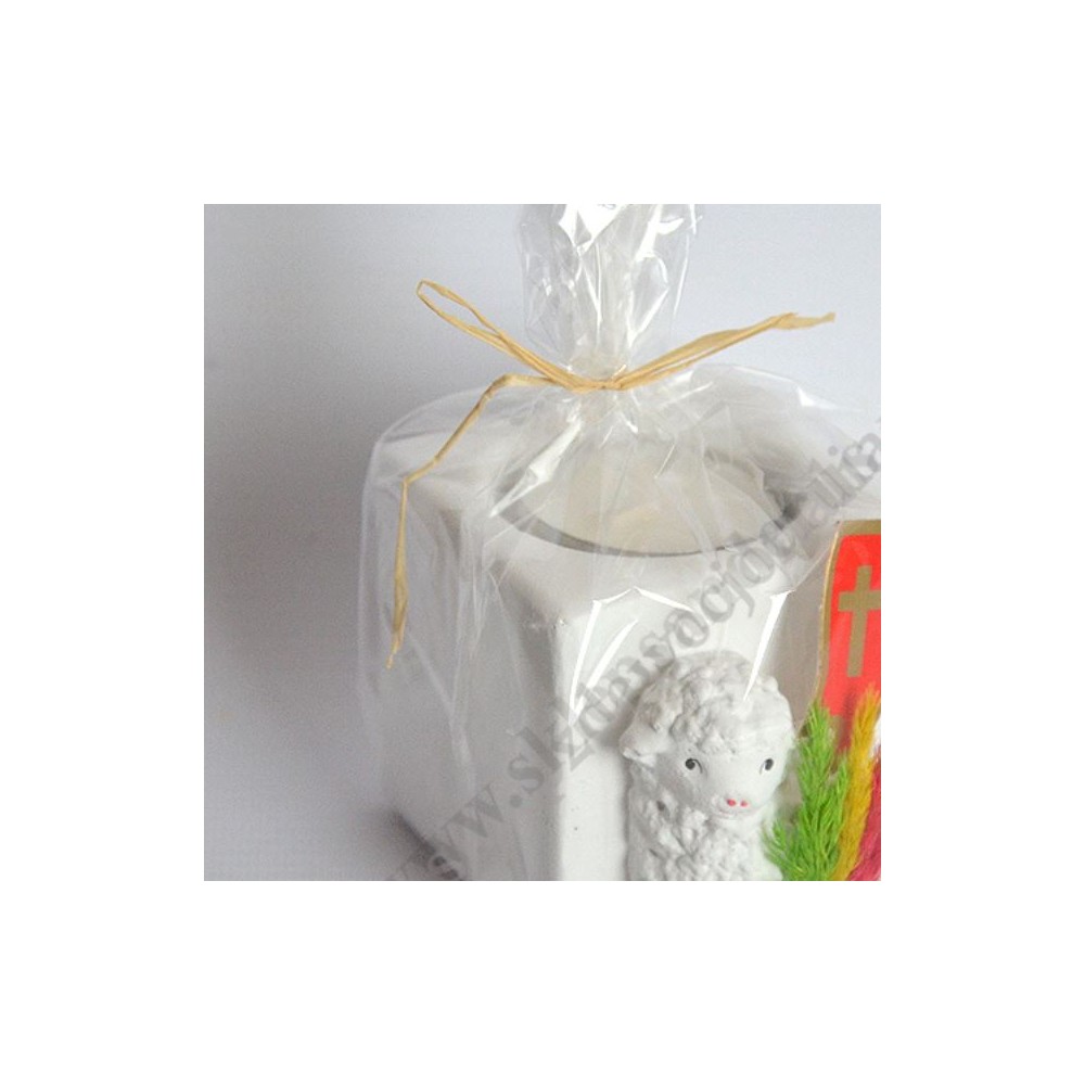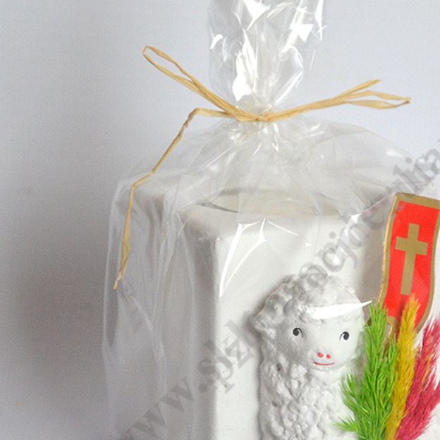 Świecznik na podgrzewacz z barankiem wielkanocnym.
