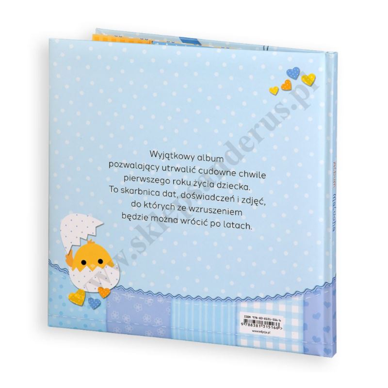 Ten piękny album wydano w dwóch wersjach: niebieski - dla chłopca i różowy - dla dziewczynki. Wybierz odpowiedni i zachowaj na zawsze pierwsze chwile nowo narodzonego dziecka!