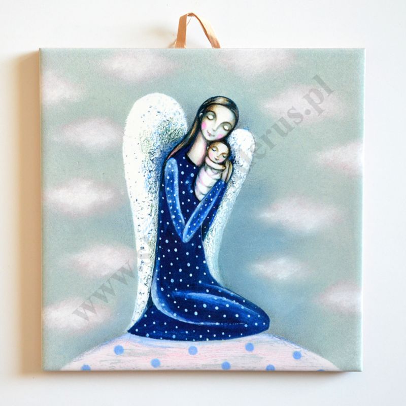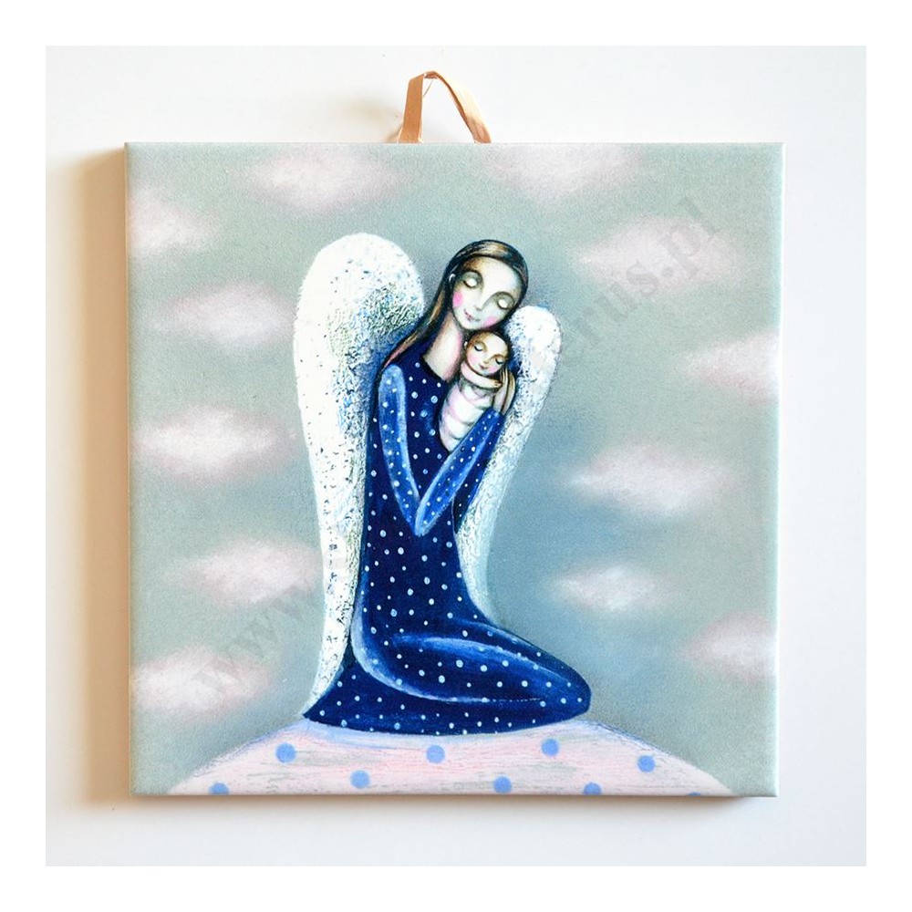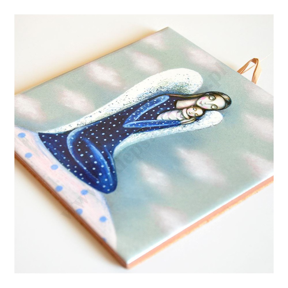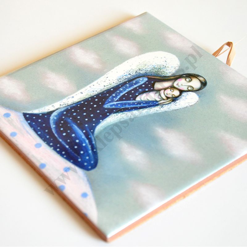 ANIOŁ Z DZIECIĄTKIEM - obrazek na ceramice 15 x 15 cm - 58966