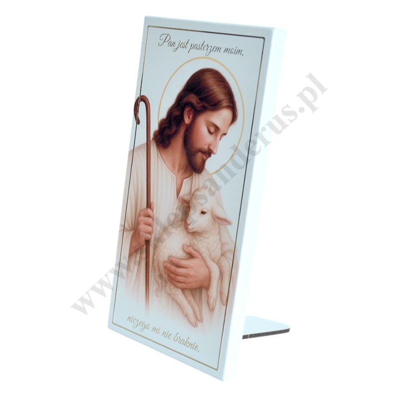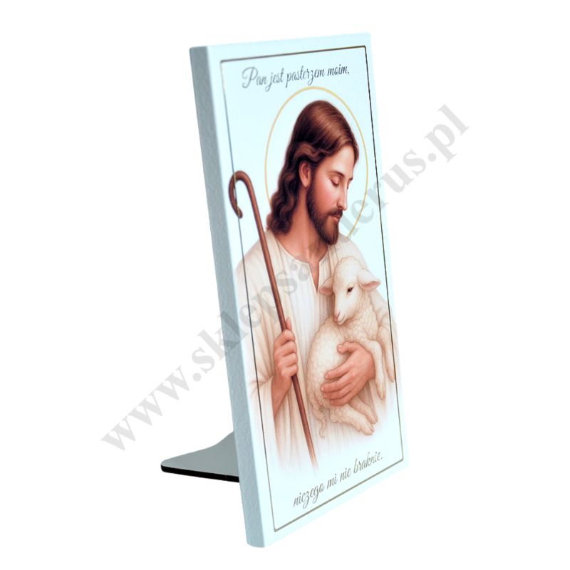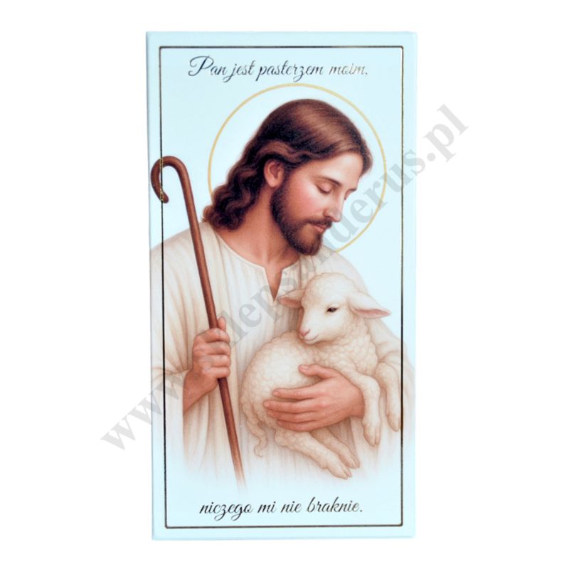 Pamiątka Pierwszej Komunii Świętej w postaci obrazka w wymiarze 10 x 19 cm, przedstawiającego Pana Jezusa Dobrego Pasterza. PONIŻEJ W PRODUKTACH POWIĄZANYCH ISTNIEJE MOŻLIWOŚĆ ZAMÓWIENIA OKAZJONALNEJ DEDYKACJI NA TABLICZCE LUB REWERSIE OBRAZKA.