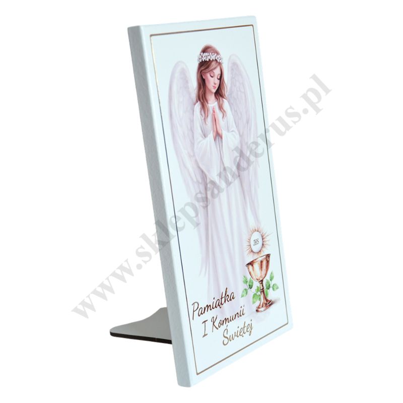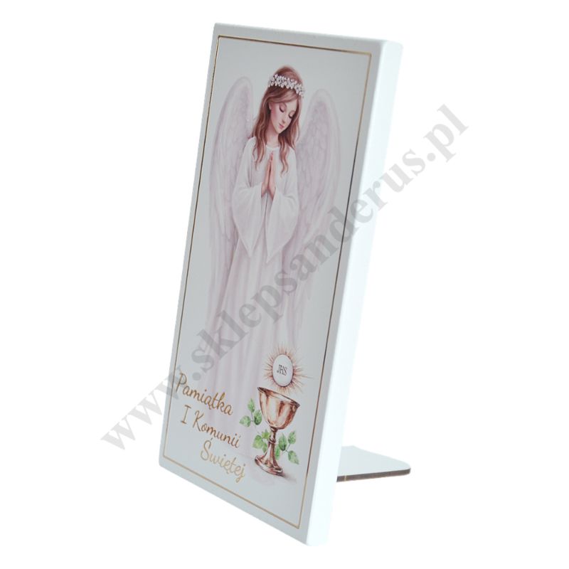 Pamiątka Pierwszej Komunii Świętej w postaci obrazka w wymiarze 10 x 19 cm. PONIŻEJ W PRODUKTACH POWIĄZANYCH ISTNIEJE MOŻLIWOŚĆ ZAMÓWIENIA OKAZJONALNEJ DEDYKACJI NA TABLICZCE LUB REWERSIE OBRAZKA.