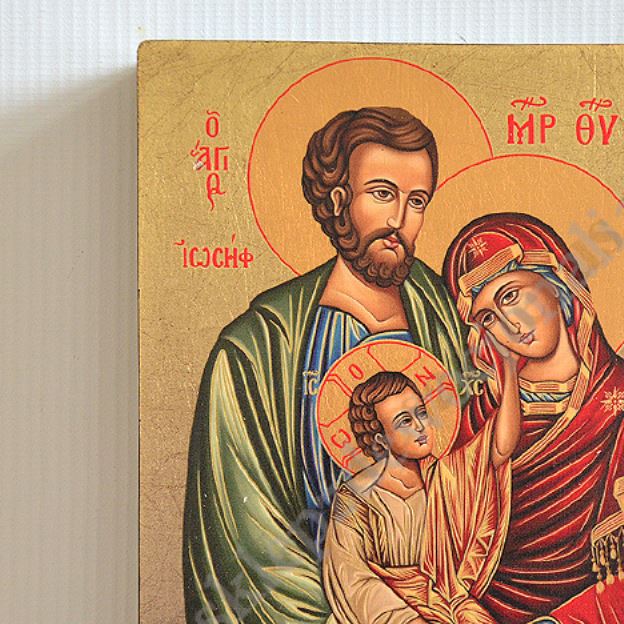 Ikona Świętej Rodziny o szerokości 11.7 cm, wysokosci 15.7 cm i grubości deski 2.5 cm. Drewno wykorzystywane do produkcji ikon dobierane jest w niezwykle staranny sposób. Wizerunek naniesiony na ręcznie złoconą deskę. Produkt wspaniale sprawdzi się jako jedyny w swoim rodzaju upominek dla najbliższych.