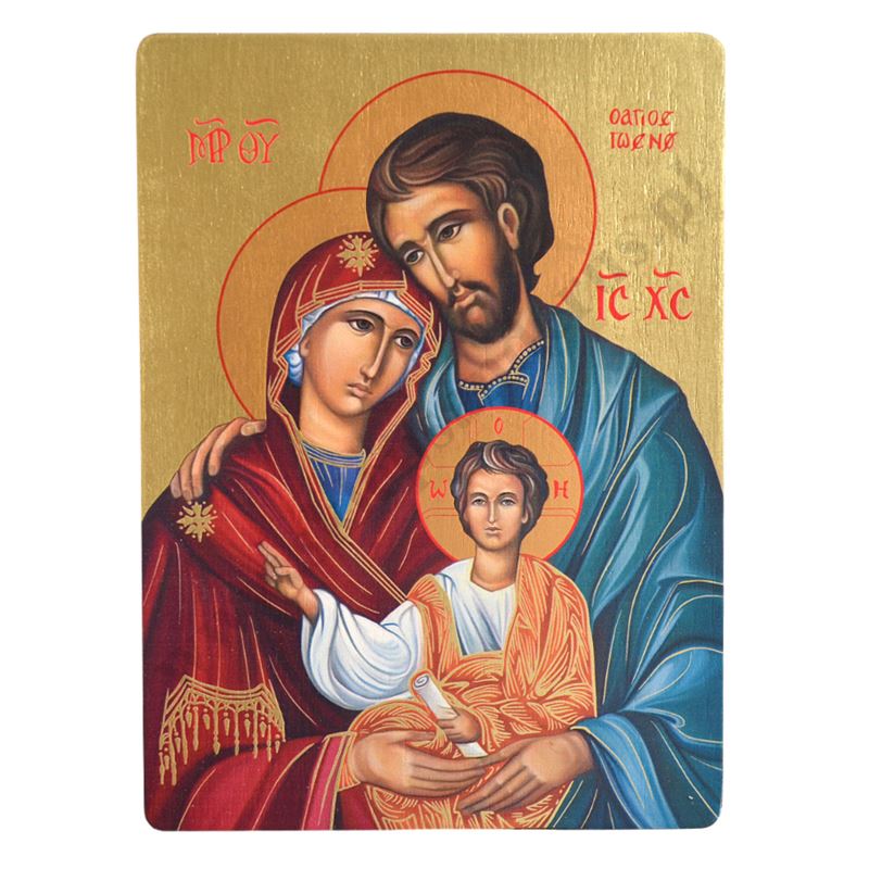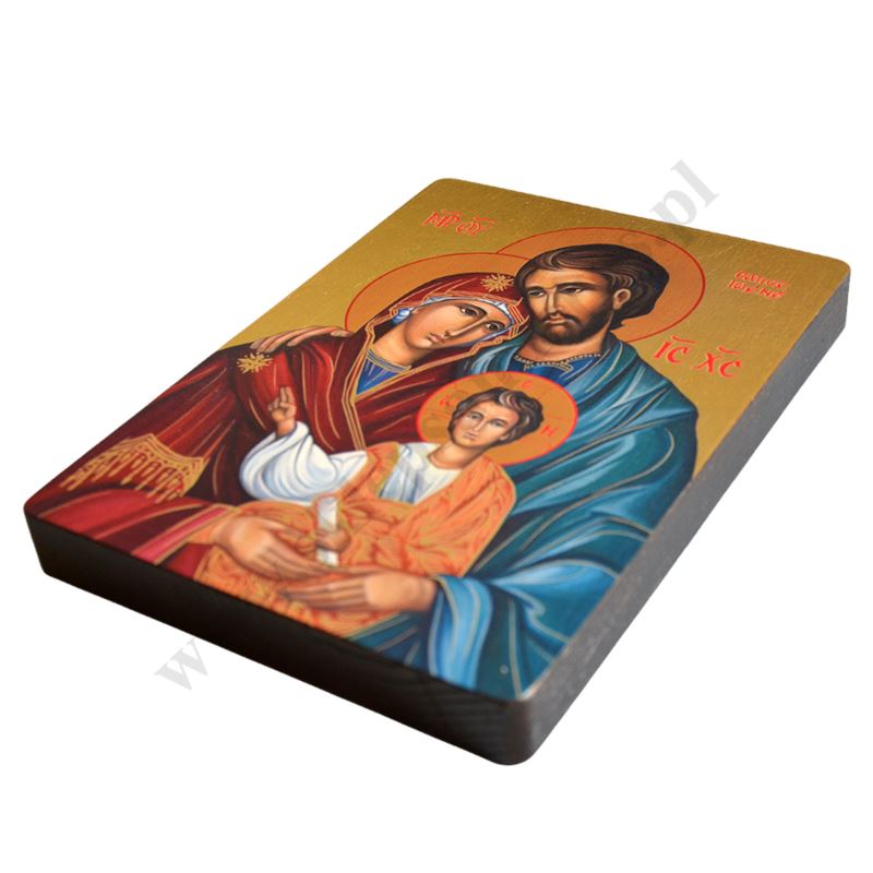Ikona przedstawia wizerunek Świętej Rodziny w formacie 17 x 23 x 2.4 cm. Drewno wykorzystywane do produkcji ikon dobierane jest w niezwykle staranny sposób. Wizerunek naniesiony na ręcznie złoconą deskę.