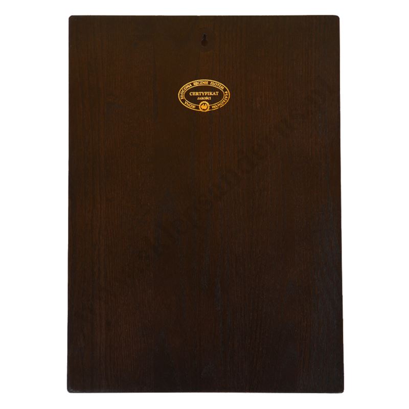 Ikona wykonana unikalną technologią nanoszenia obrazu na drewno, która pozwala na wierne odtworzenie oryginału. Deska olchowa, lita klejona, odporna na pęknięcia i wygięcia. Złocenia na ikonie wykonane ręcznie, złotem płatkowym.