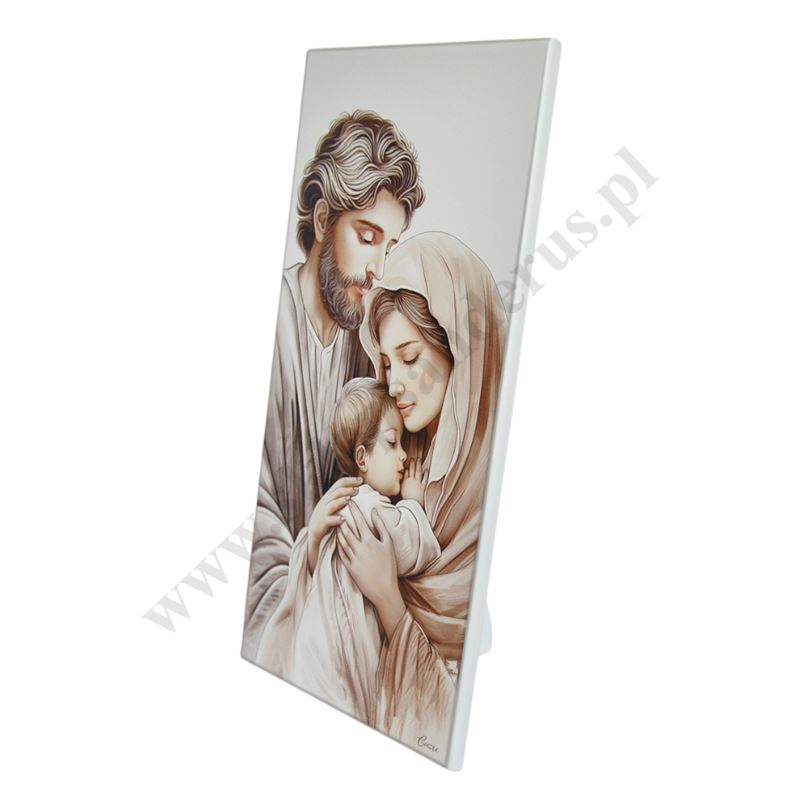 Obrazek w wymiarze 16 x 32 cm przedstawiający wizerunek Świętej Rodziny, który został zaprojektowany oraz wyprodukowany we Włoszech zgodnie z najwyższymi standardami włoskiego rzemiosła.
