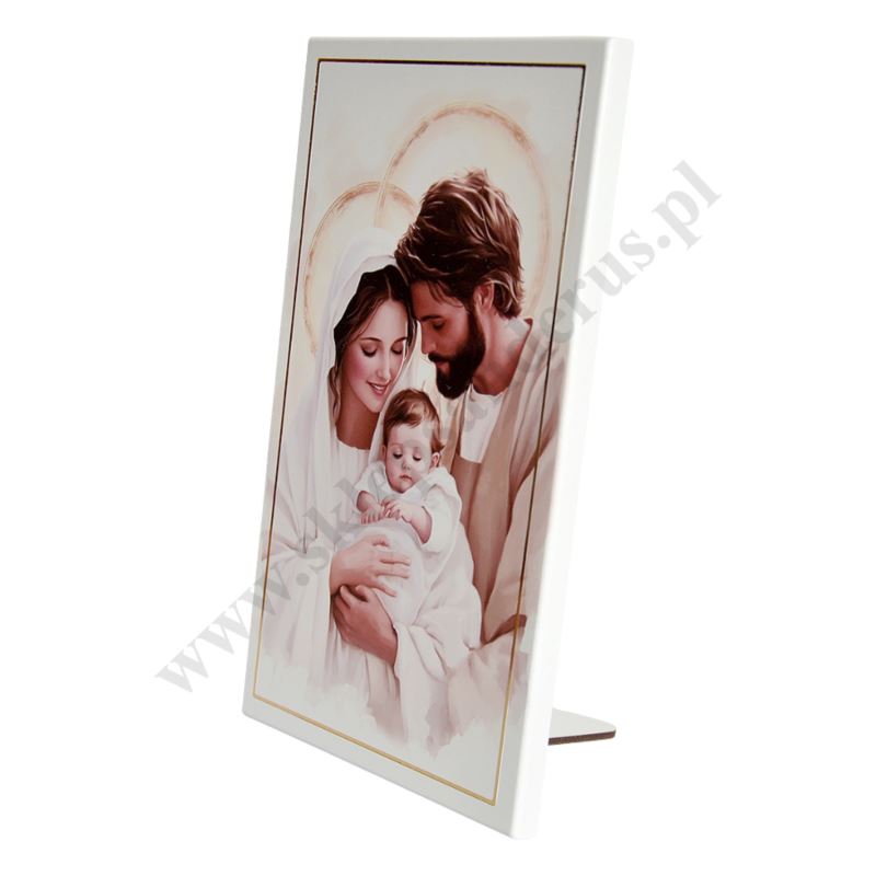 Drewniany obrazek przedstawiający wizerunek Świętej Rodziny w formacie 18 x 33 cm z możliwością powieszenia jak i postawienia. W PRODUKTACH POWIĄZANYCH ISTNIEJE MOŻLIWOŚĆ ZAMÓWIENIA OKAZJONALNEJ DEDYKACJI NA TABLICZCE LUB REWERSIE OBRAZKA.