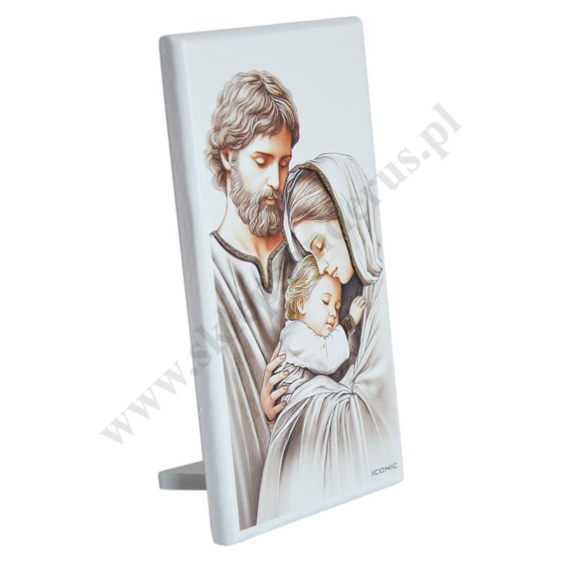 Obrazek w wymiarze 6 x 12 cm przedstawiający wizerunek Świętej Rodziny, który został zaprojektowany oraz wyprodukowany we Włoszech zgodnie z najwyższymi standardami włoskiego rzemiosła.