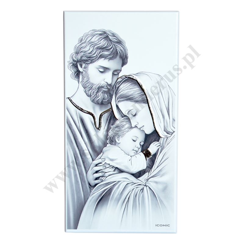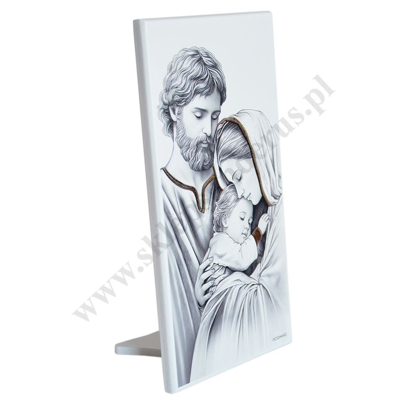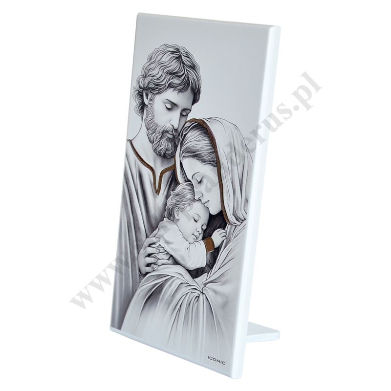 Obrazek w wymiarze 9 x 18 cm przedstawiający wizerunek Świętej Rodziny, który został zaprojektowany oraz wyprodukowany we Włoszech zgodnie z najwyższymi standardami włoskiego rzemiosła. Na obrazek nanoszone są przestrzenne elementy dekoracyjne Silver Foil. Ta nowoczesna technologia pozwala uzyskać produkt ekskluzywny i wysokiej jakości.