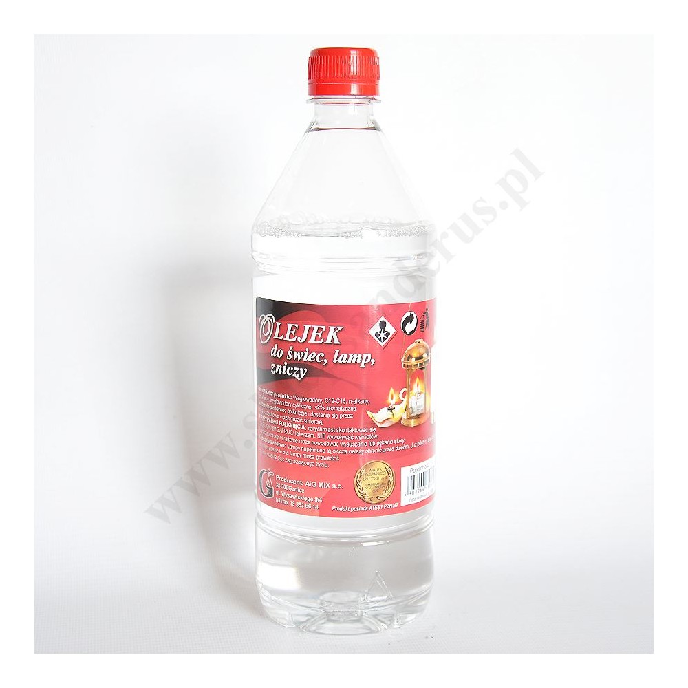 Olej parafinowy do świec liturgicznych, lamp i zniczy o pojemności 1 L, bezwonny, bezdymny, bezbarwny.