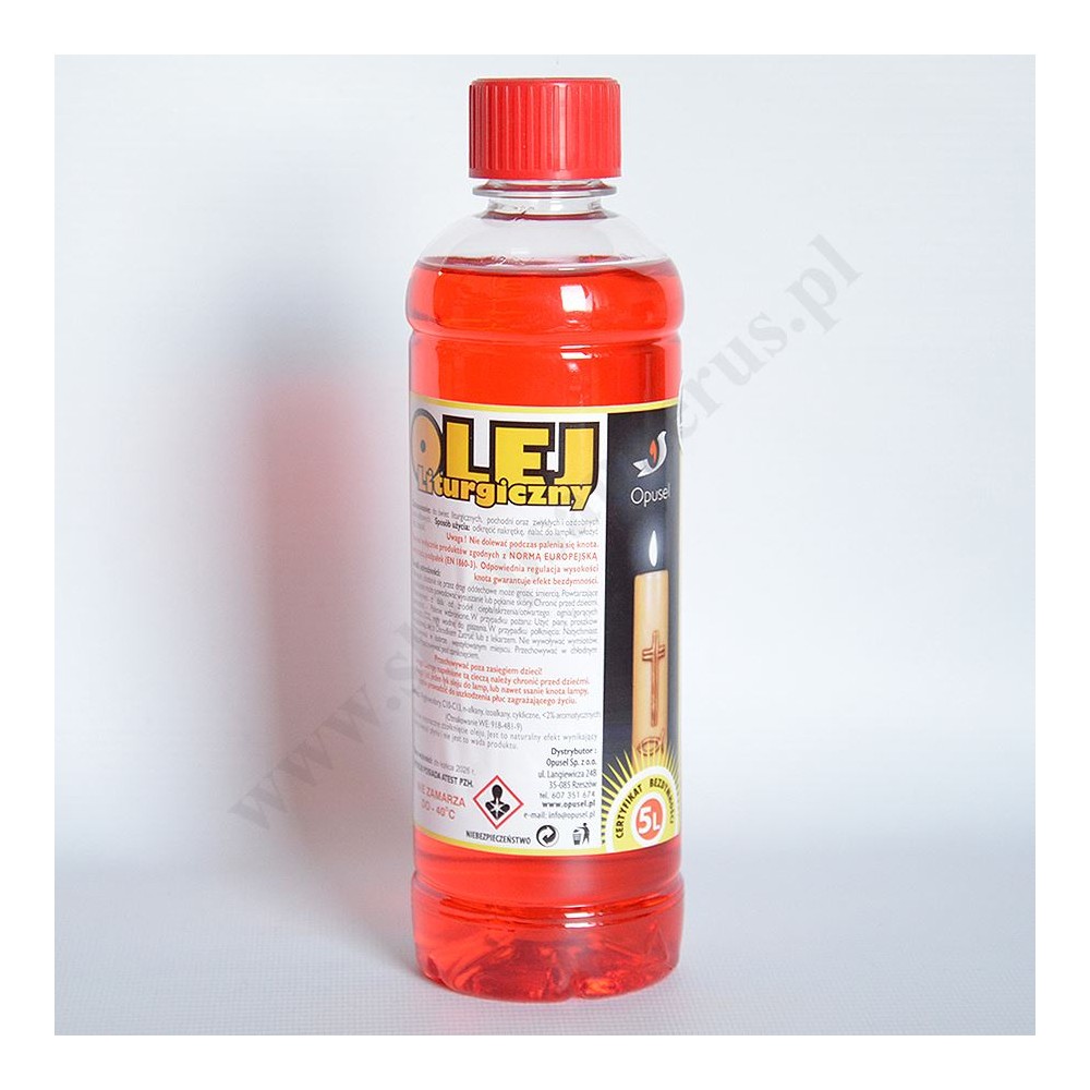 Olej parafinowy o zapachu róży o pojemności 0.5 L do świec liturgicznych, pochodni oraz zwykłych i ozdobnych lamp naftowych. Posiada certyfikat bezdymności.