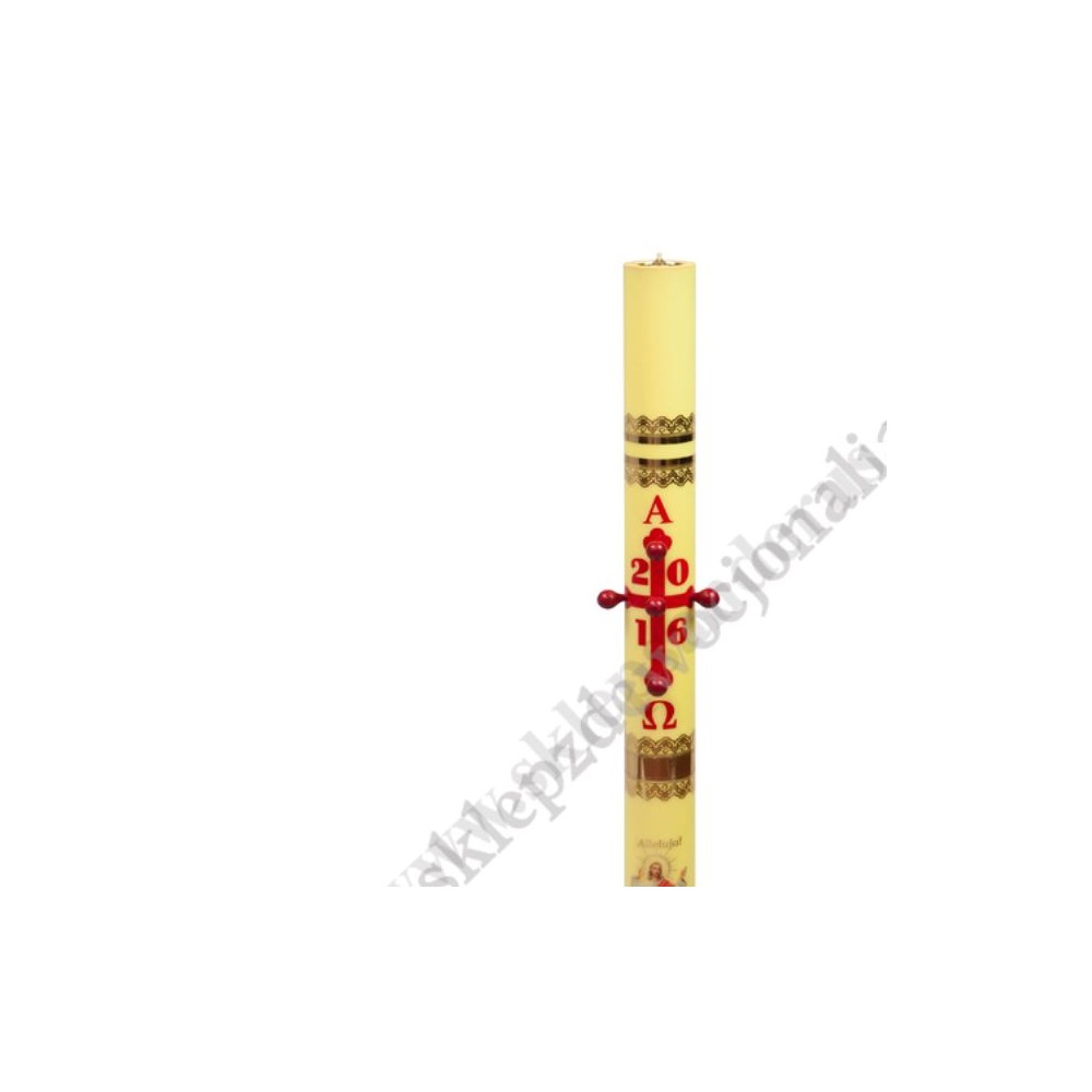 Paschał wykonany z bardzo trwałego tworzywa sztucznego doskonale imitującego prawdziwą parafine, posiadający wkład olejowy regulowany o pojemności 180 ml. Wysokość paschału 110 cm, średnica 9 cm. Zawsze sprzedajemy paschał z aktualnym rokiem.
