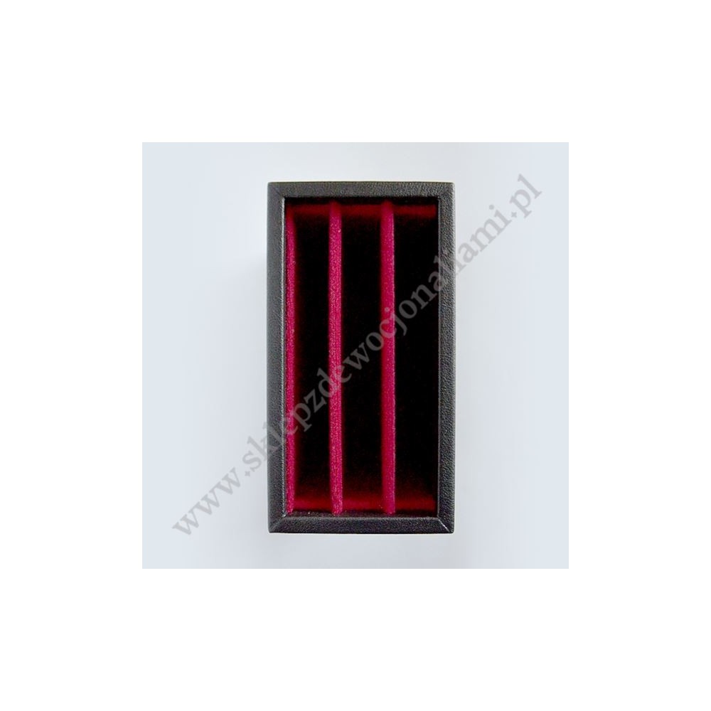 Futerał mieszczący trzy pateny wykonany z drewna oklejony z zewnątrz skajem, wewnątrz wyścielony welurem.