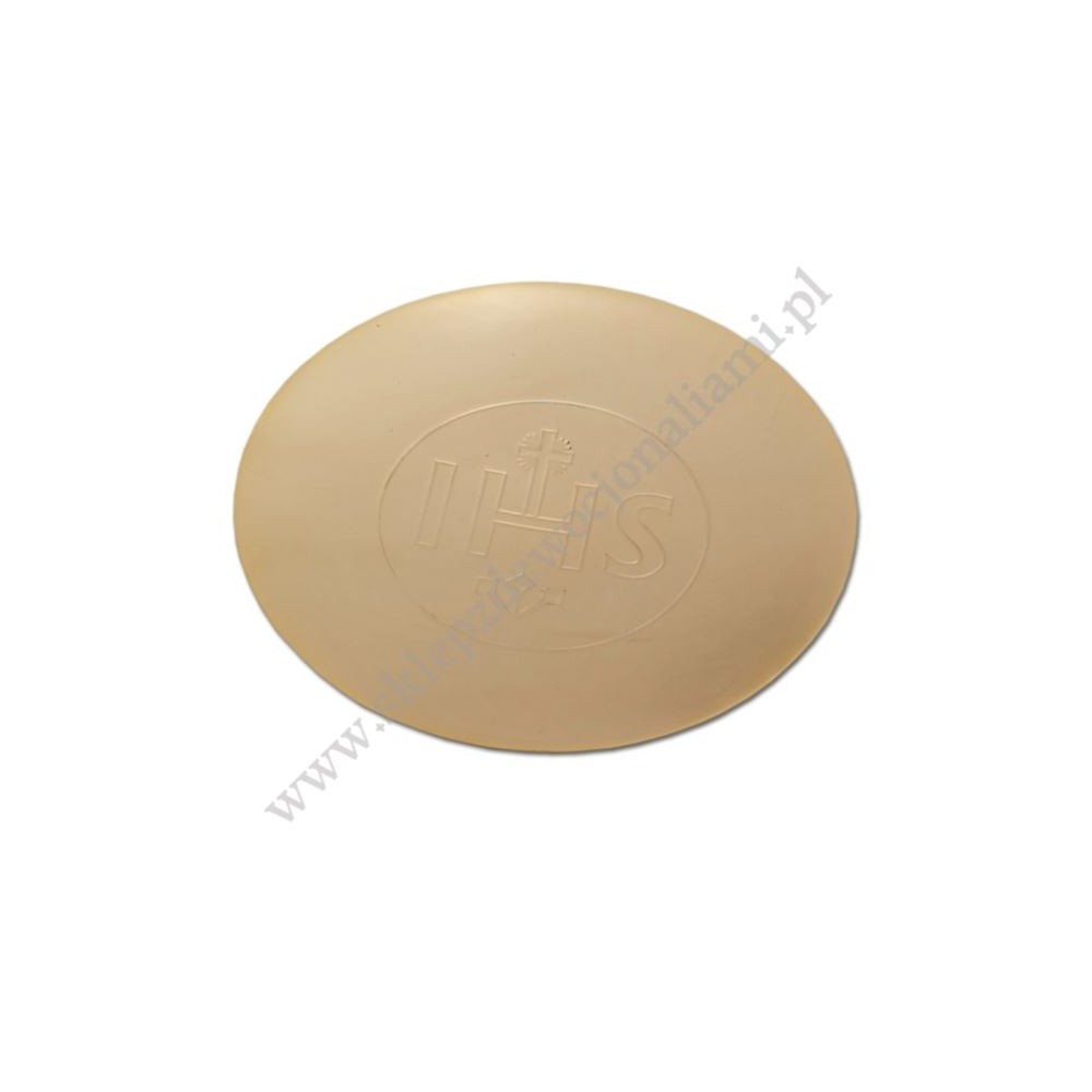 Patena grawerowana mosiężna, pozłacana o średnicy 14 cm