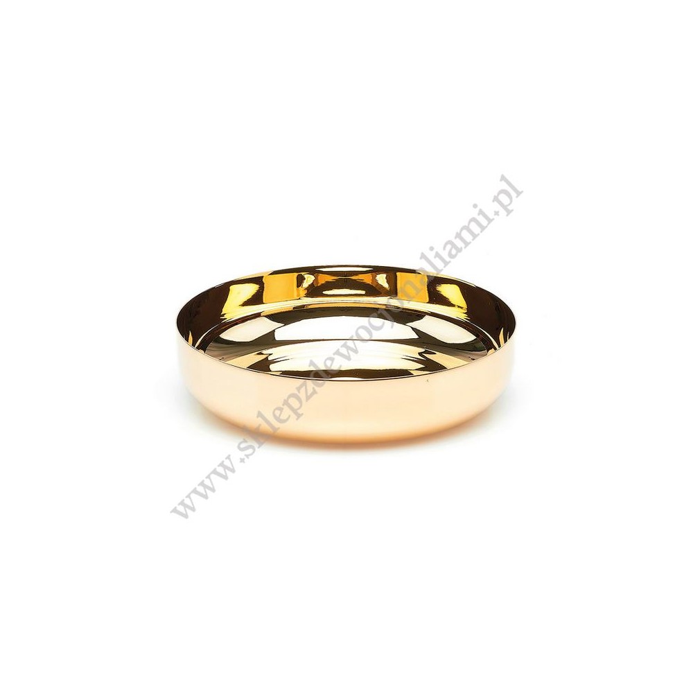 Patena głęboka do koncelebry, mosiężna, pozłacana o średnicy 16 cm.