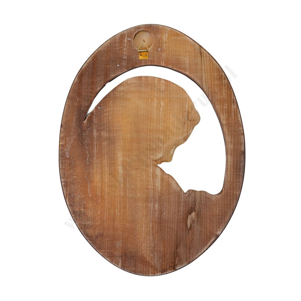 Płaskorzeźba Matki Bożej z Dzieciątkiem ręcznie rzeźbiona o wysokości ok. 39 cm i szerokości ok. 29 cm. Zwracamy uwagę, że produkt może się różnić od tego prezentowanego na zdjęciu ze względu na ręczne wykonanie.