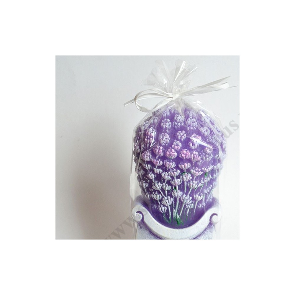 Świeca w kształcie bukietu o zapachu lawendy. Wysokość świecy 14 cm, szerokość w najszerszym miejscu 6.7 cm.