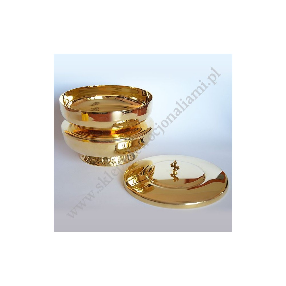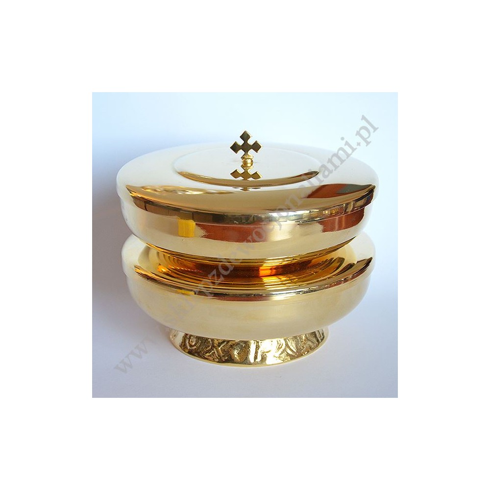 Puszka liturgiczna piętrowa mosiężna, pozłacana