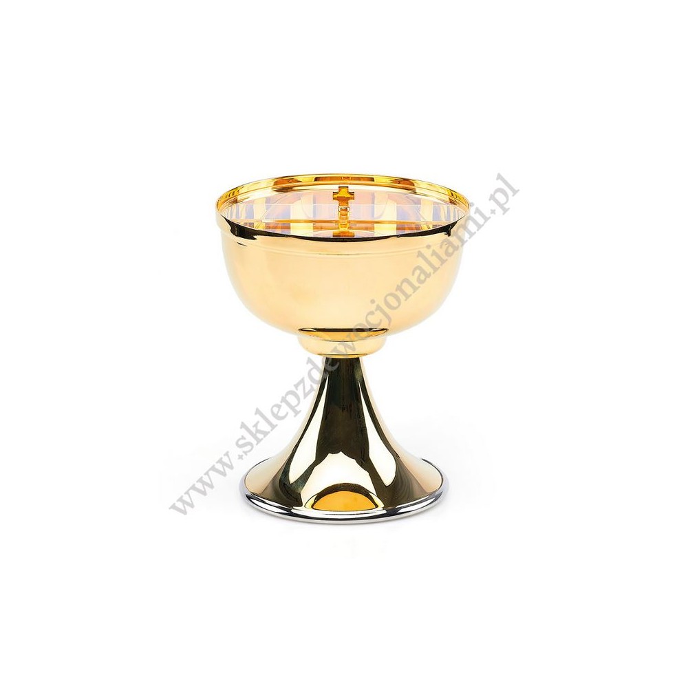 Puszka polowa z obrotową pokrywą z transparentnej pleksi, zabezpieczającą komunikanty przed wiatrem lub deszczem.