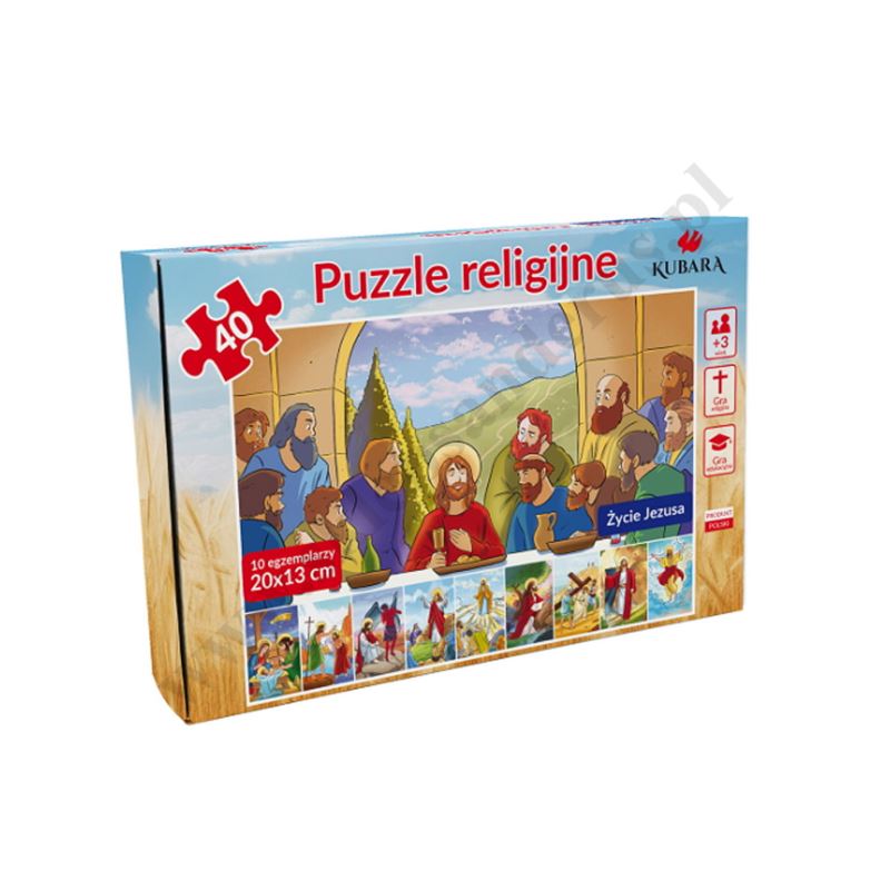 Puzzle składają się z 10 egzemplarzy (scen z życia Jezusa). Każdy egzemplarz składa się 40 części.