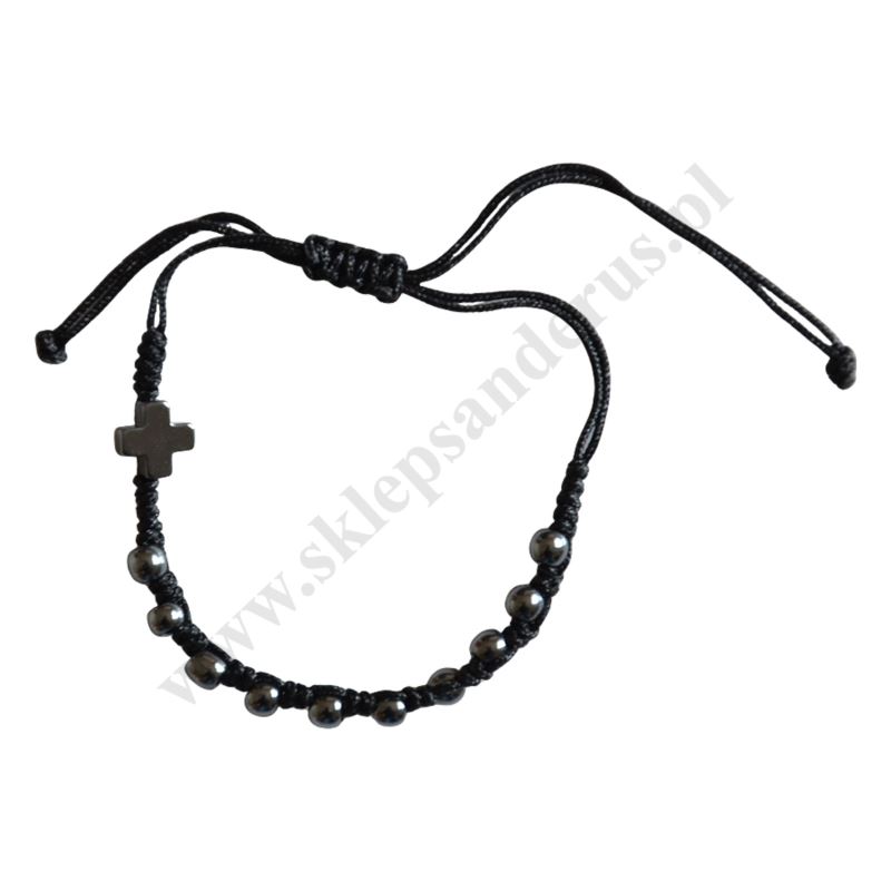 Bransoletka na rękę wykonana ze sznurka i hematytu.