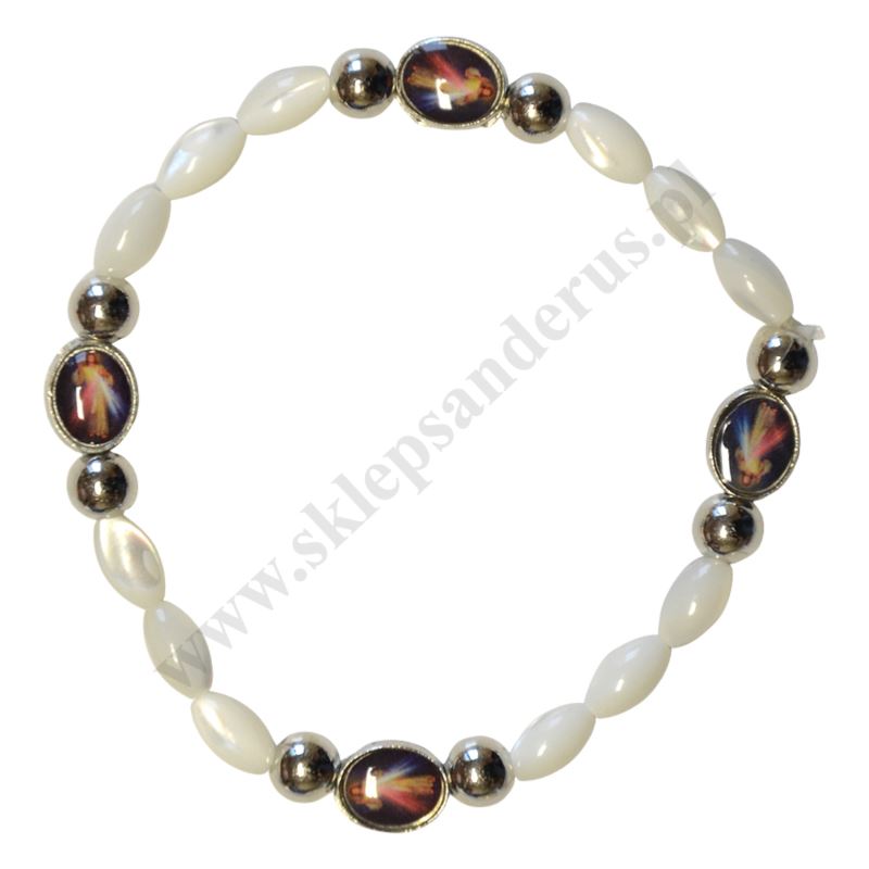 Bransoletka na rękę na gumce wykonana z tworzywa sztucznego.