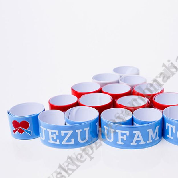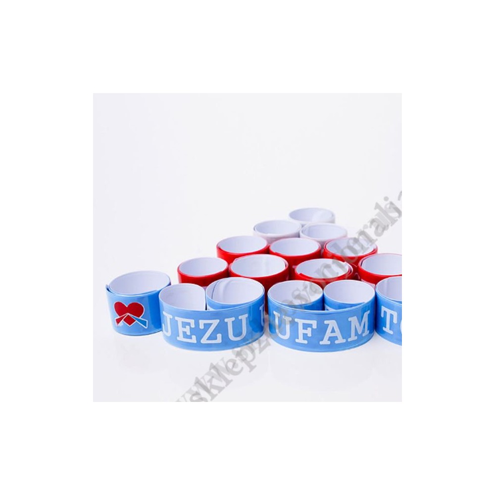 Bransoletka odblaskowa o długości 32.7 cm i szerokości 3 cm. Sprzedaż w miksie wzorów.