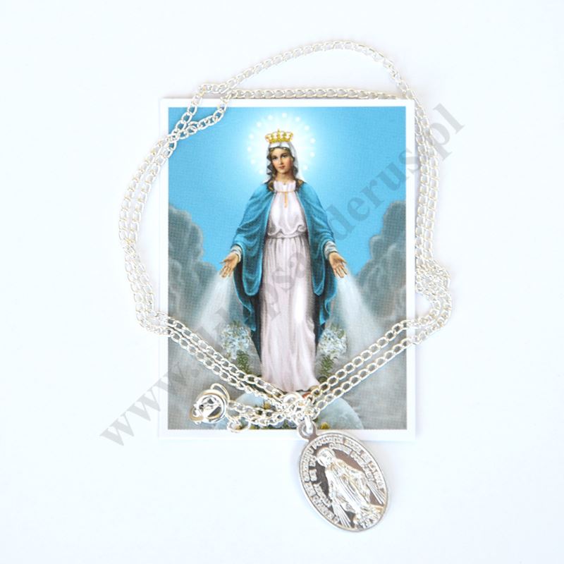 Cudowny medalik na łańcuszku. Wysokość medalika 2.3 cm, długość łańcuszka 48 cm.