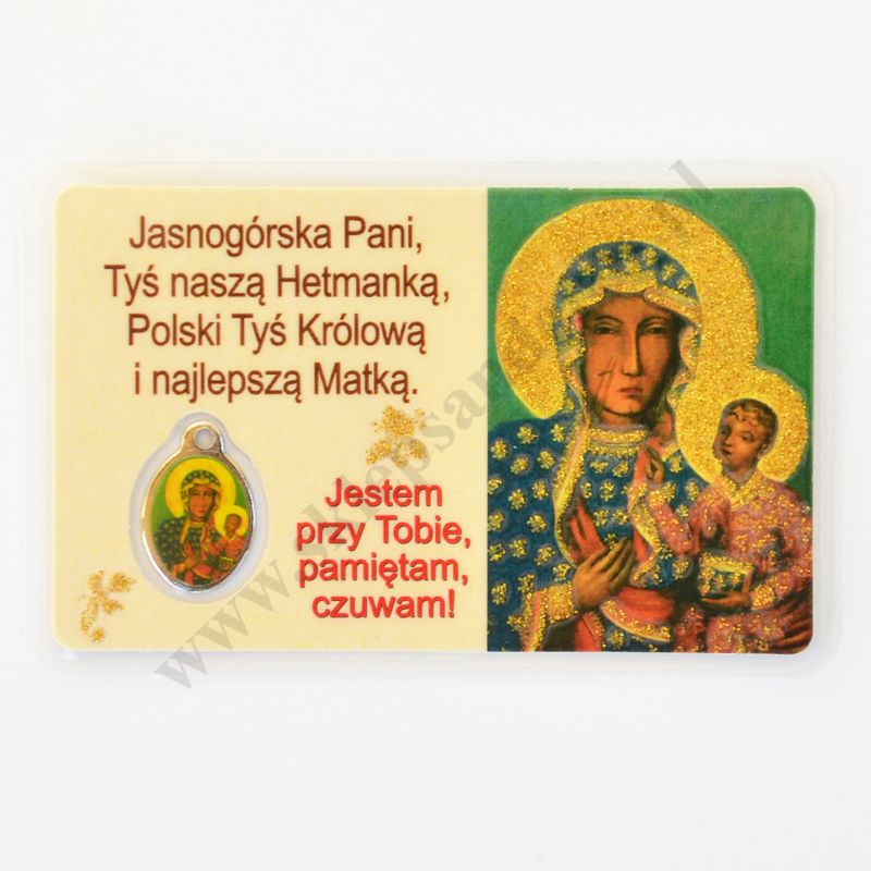 Medalik foliowany Matka Boża Częstochowska w formacie 8.5 x 5.5 cm.