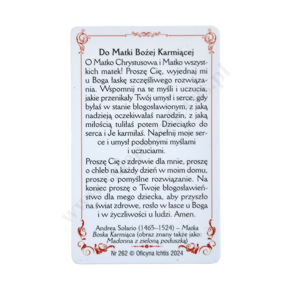 Biznes karta z tekstem modlitwy o szczęśliwe rozwiązanie.Format karty 5.4 x 8.5 cm.