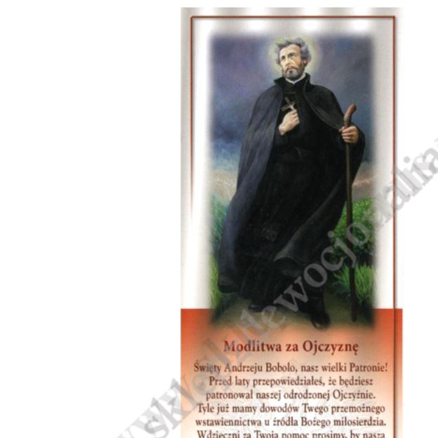Zakładka z wizerunkiem Świętego Andrzeja Boboli z modlitwą za Ojczyznę.