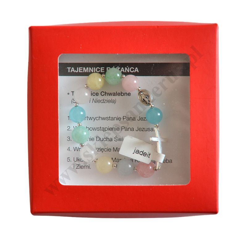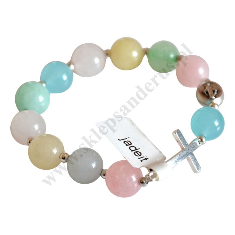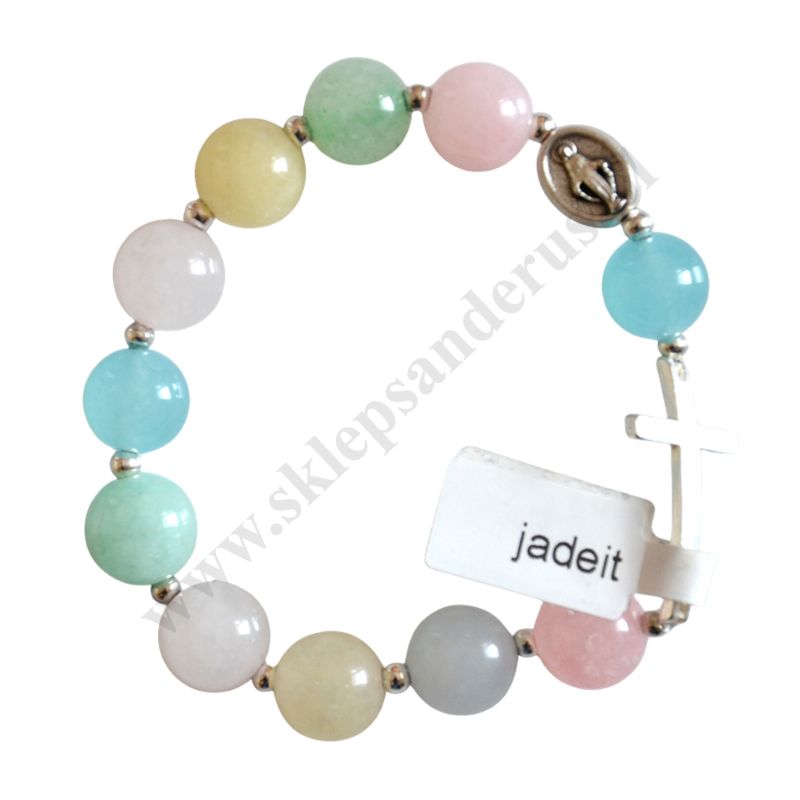 Różaniec bransoletka wykonana z półszlachetnego obrabianego kamienia jadeit o średnicy koralika 10 mm.